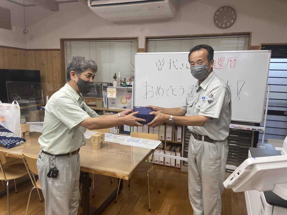 続きまして支店・工務の曽我さんが7月はじめに還暦となられ、