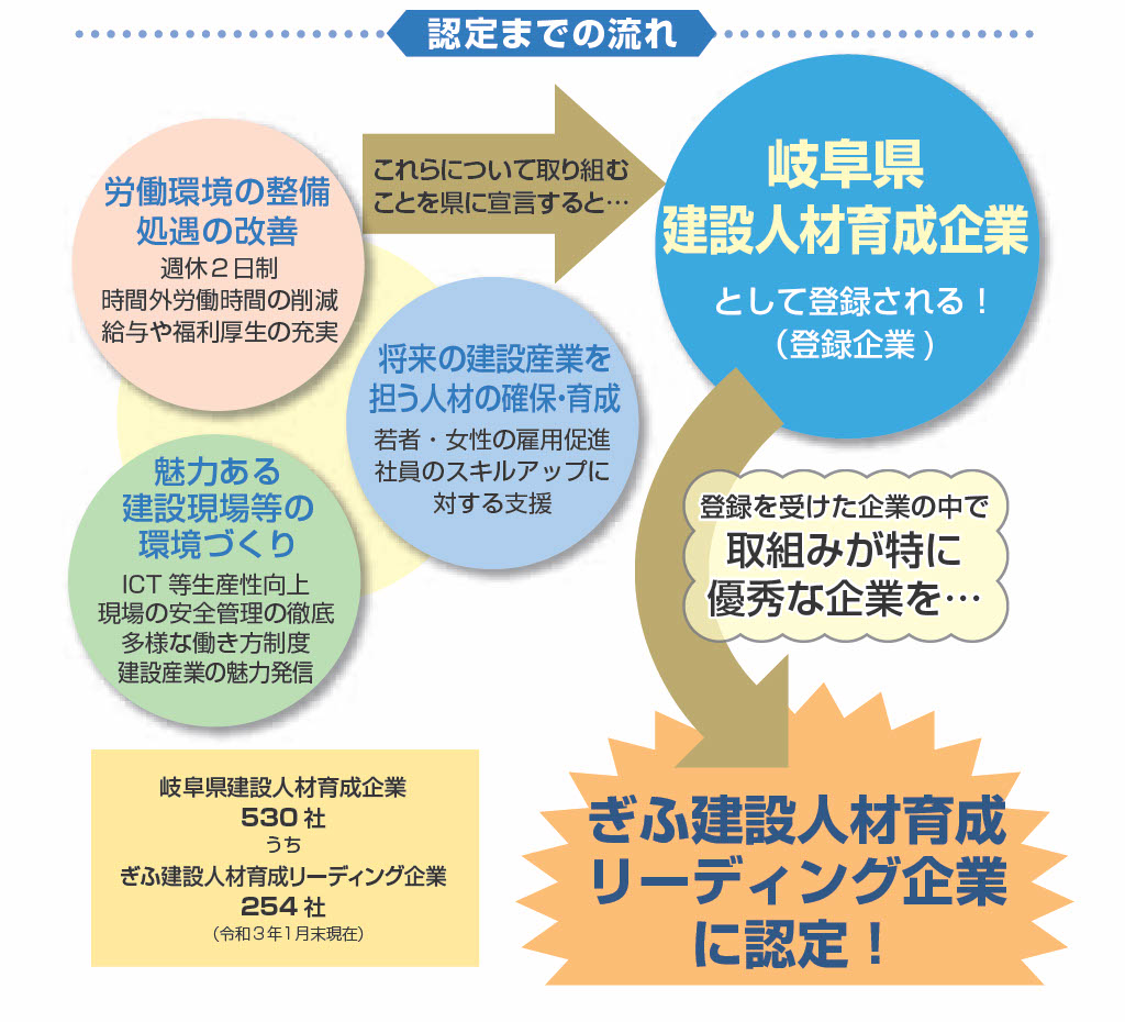 登録され、取組みが特に優秀な企業が【ぎふ建設人材育成リーディング企業】に認定されます。