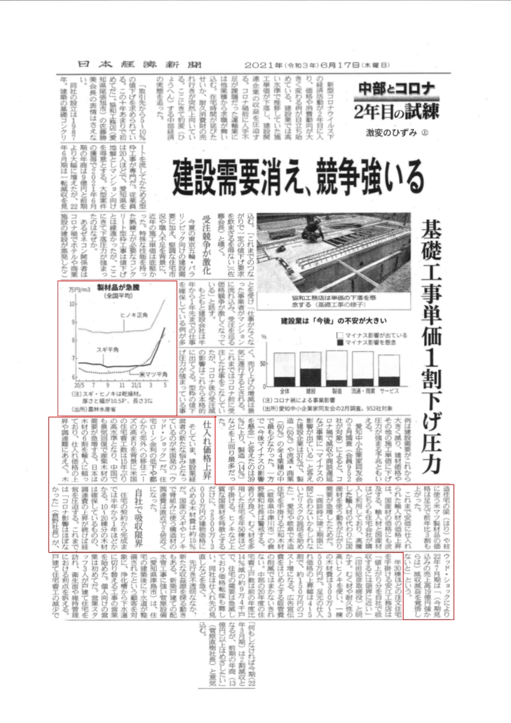 今回の「ウッドショック」は、今まで安価な輸入材に頼ってきた、ツケが回ったのだと感じています。