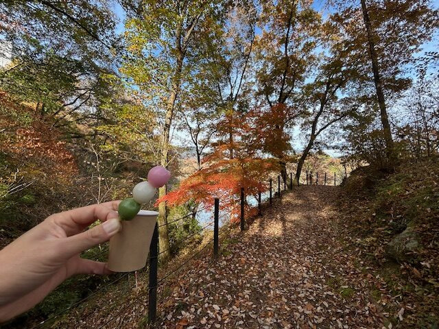 会場に向かう途中の参道で紅葉を楽しみながらおいしくいただきました。