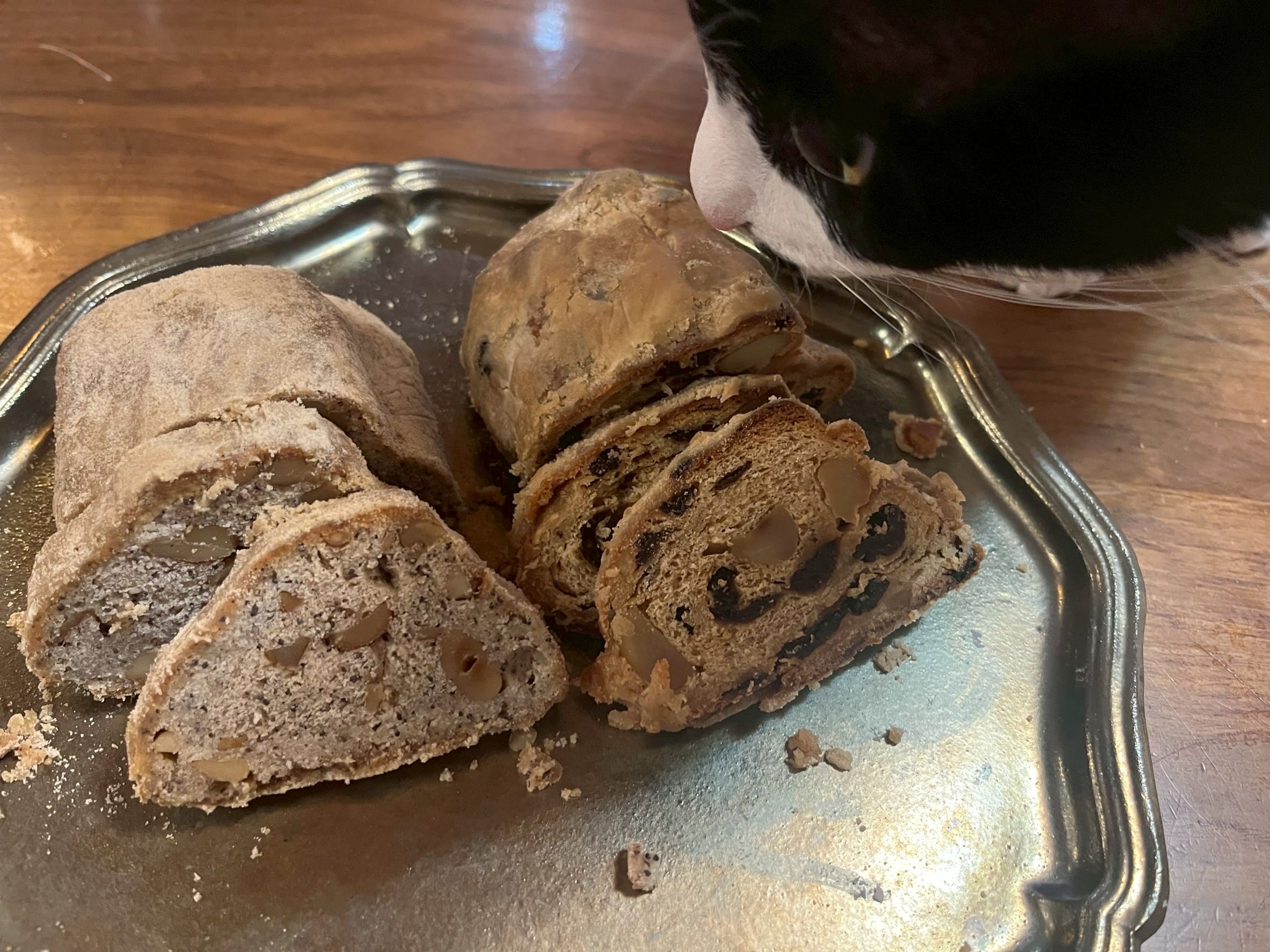 右のシュトーレンは甘さ控えめで中身はナッツがメイン。