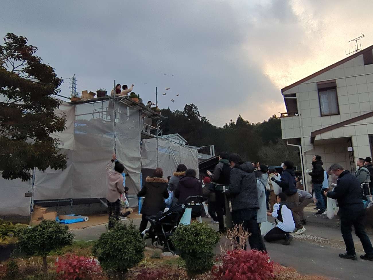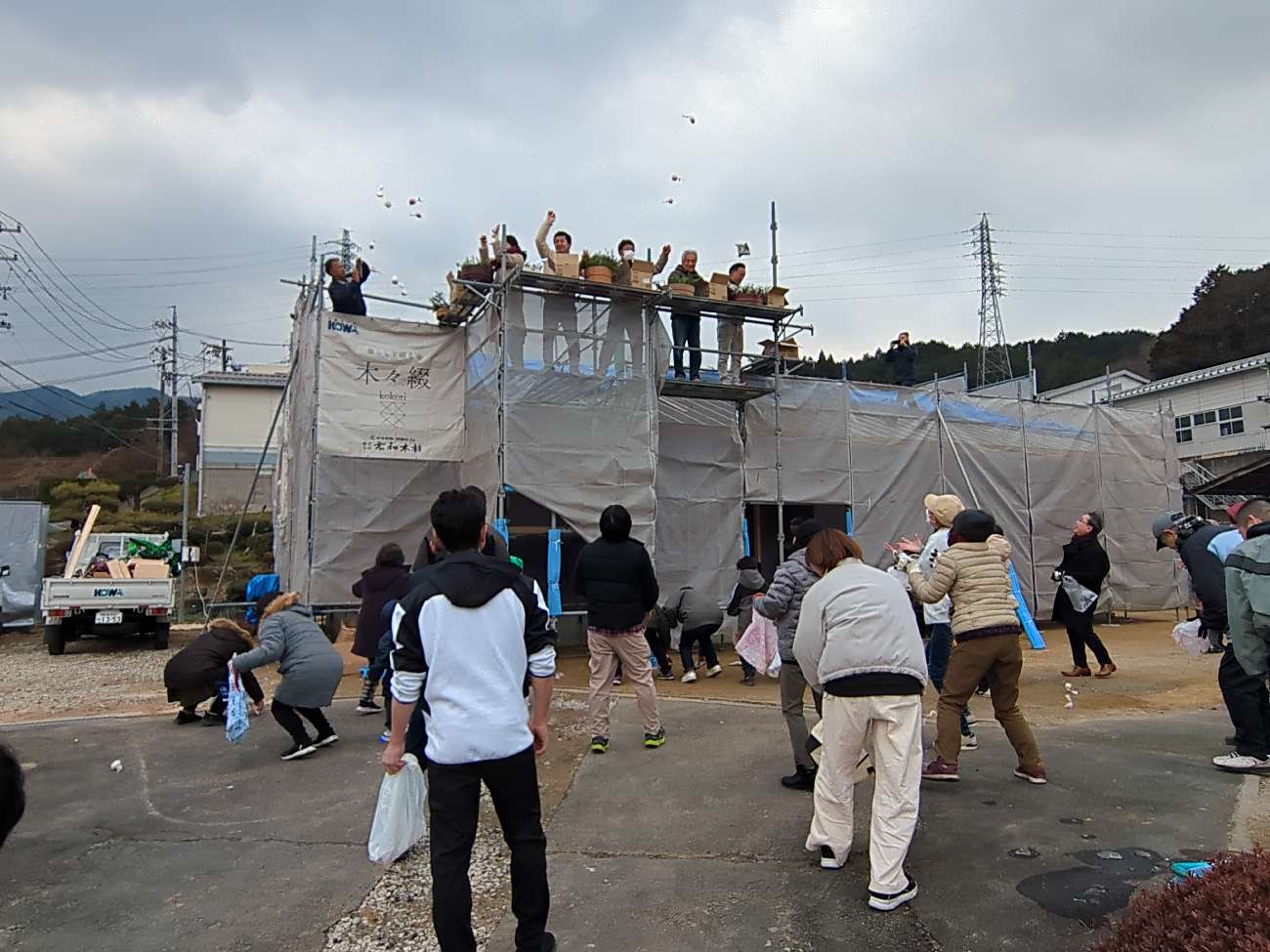 そして上棟式をしてからはお餅投げをさせていただきました。