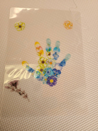 それは、2才になった子どもの手形を使った「花の手形アート」です。