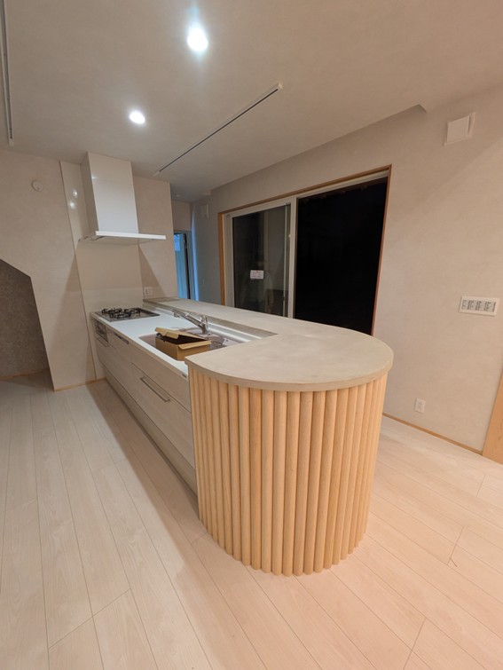キッチン前のカウンター下腰壁に施工しました!!
