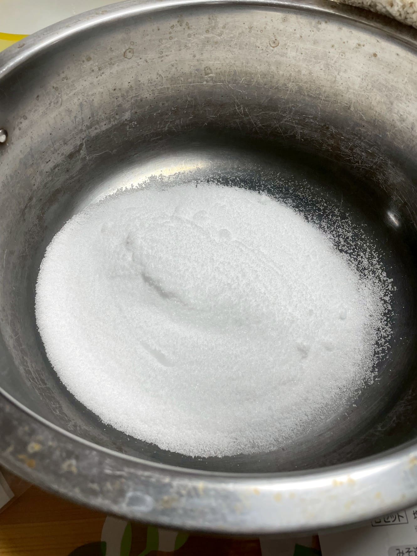 まだ少し熱く、「アツ、アツ!」となりながら混ぜます。