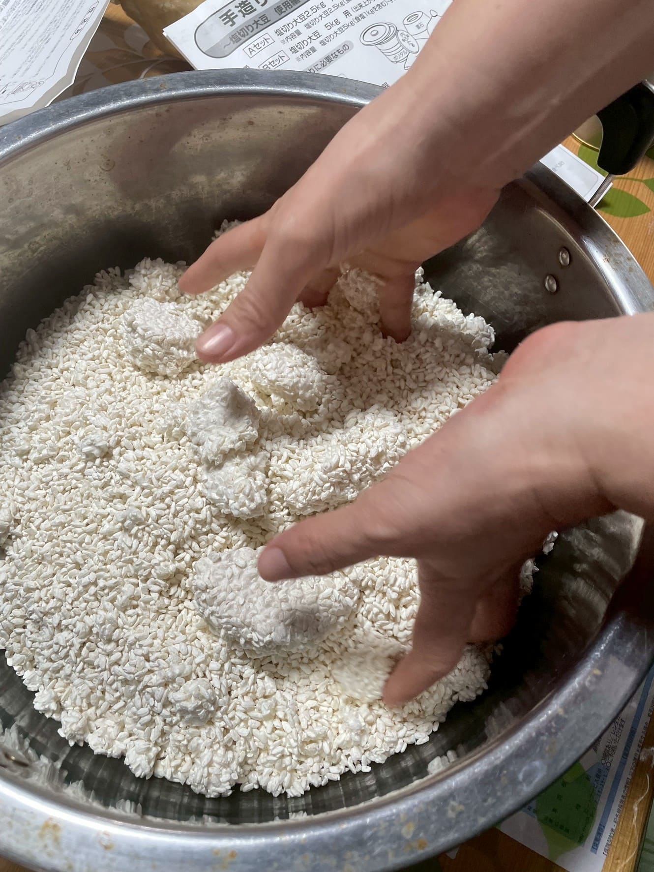 指示が飛びます「米麹は一粒一粒バラバラにして、塩とまんべんなく混ぜて!」