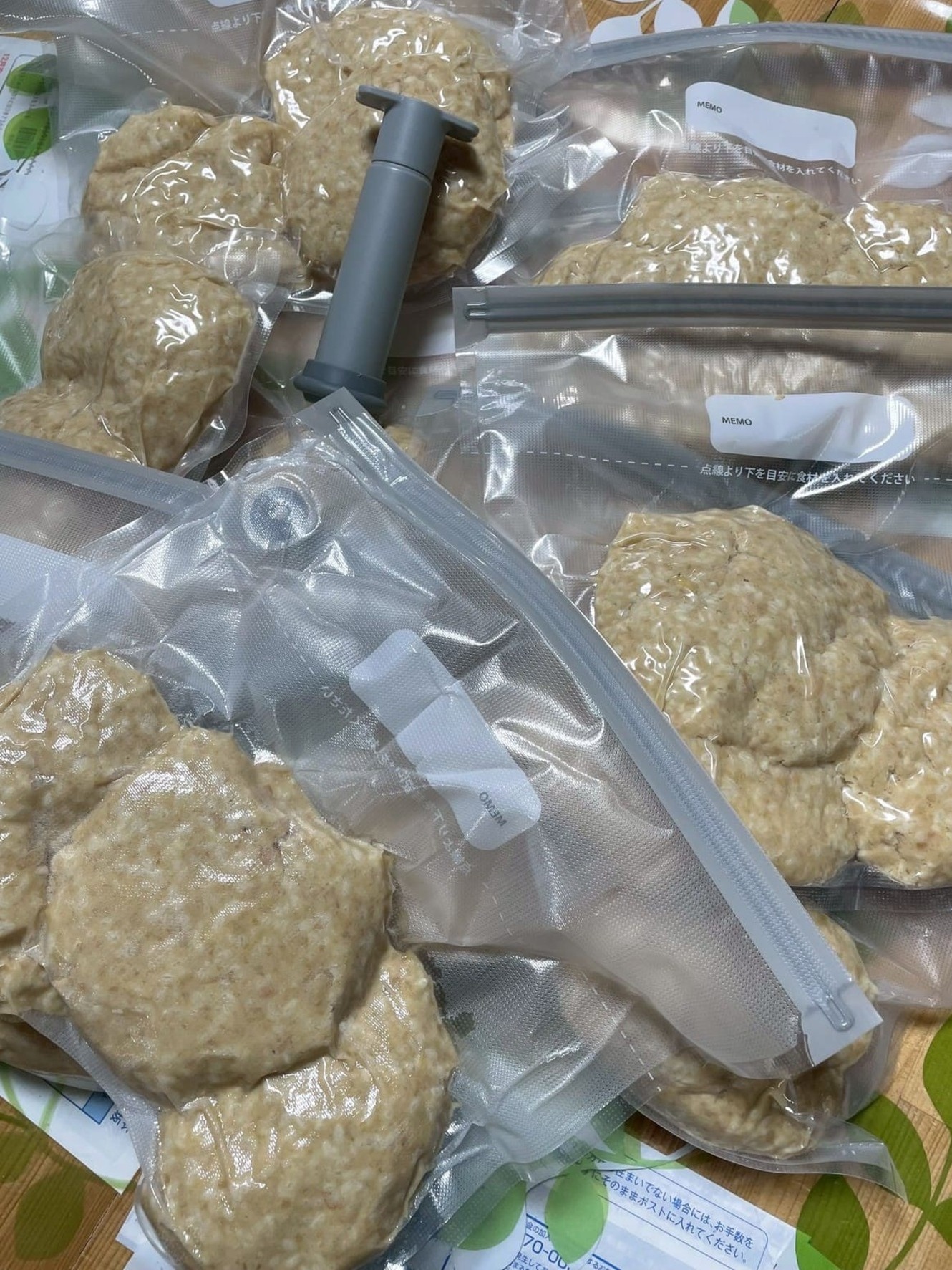 「よく混ざったらハンバーグの要領で空気を抜きながら丸めて袋に入れるよ!」