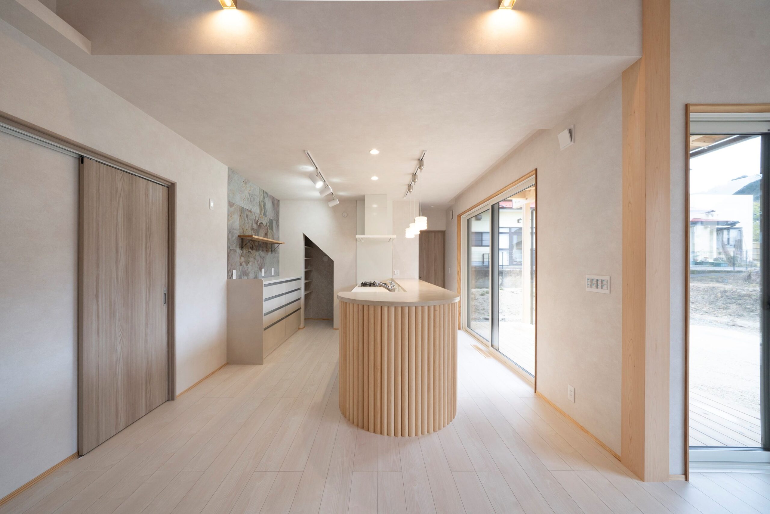 各部屋に曲線を取り入れて、やわらかい雰囲気をつくっていきました。