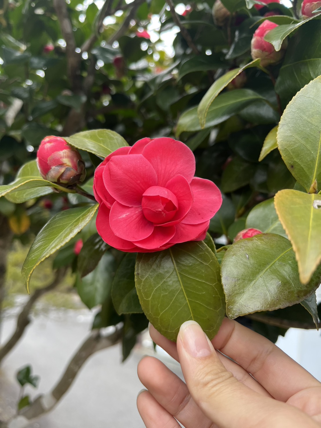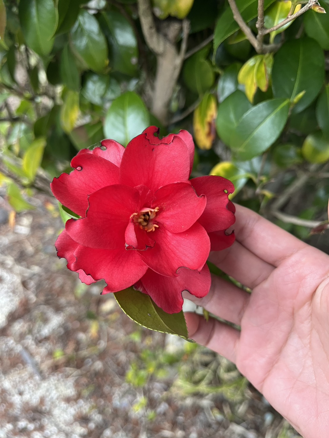 ポトッと散っていたら椿、ハラハラ散っていたら寒椿ということがわかりました。