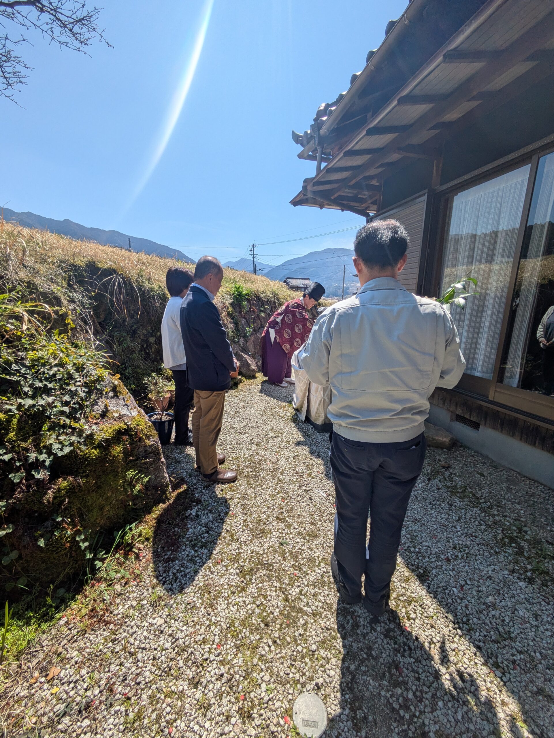 建物の神様に工事の報告し、敷地を清め、神様に感謝しこの建物を鎮めて貰い