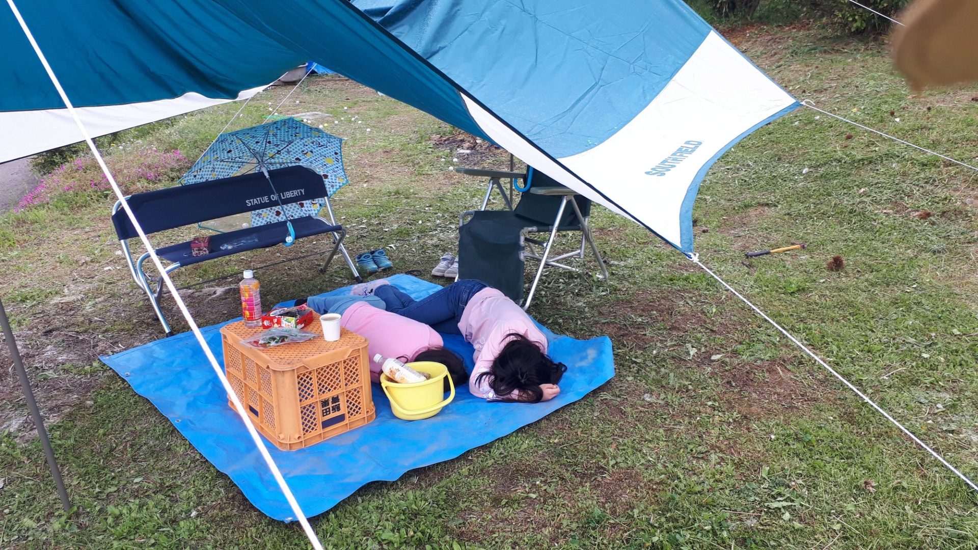 タープの下でお茶会が始まり、お昼寝をしてました。