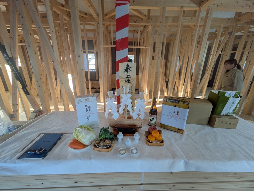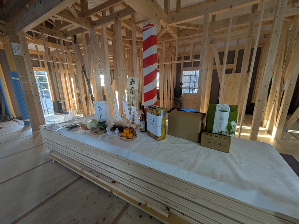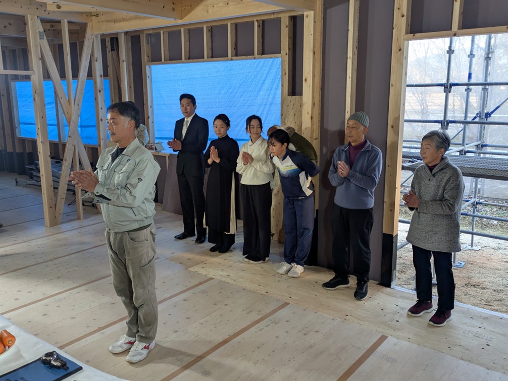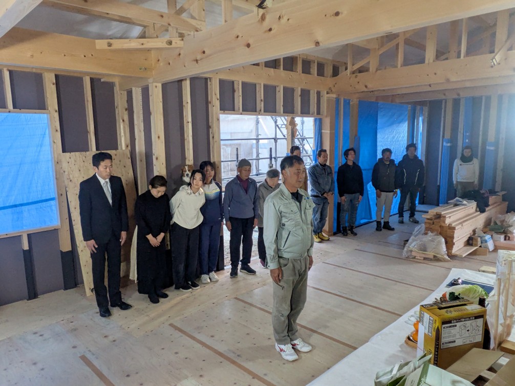 上棟式は、N様ご家族と当社スタッフ、作業をしていただいた大工さん全員で行いました。