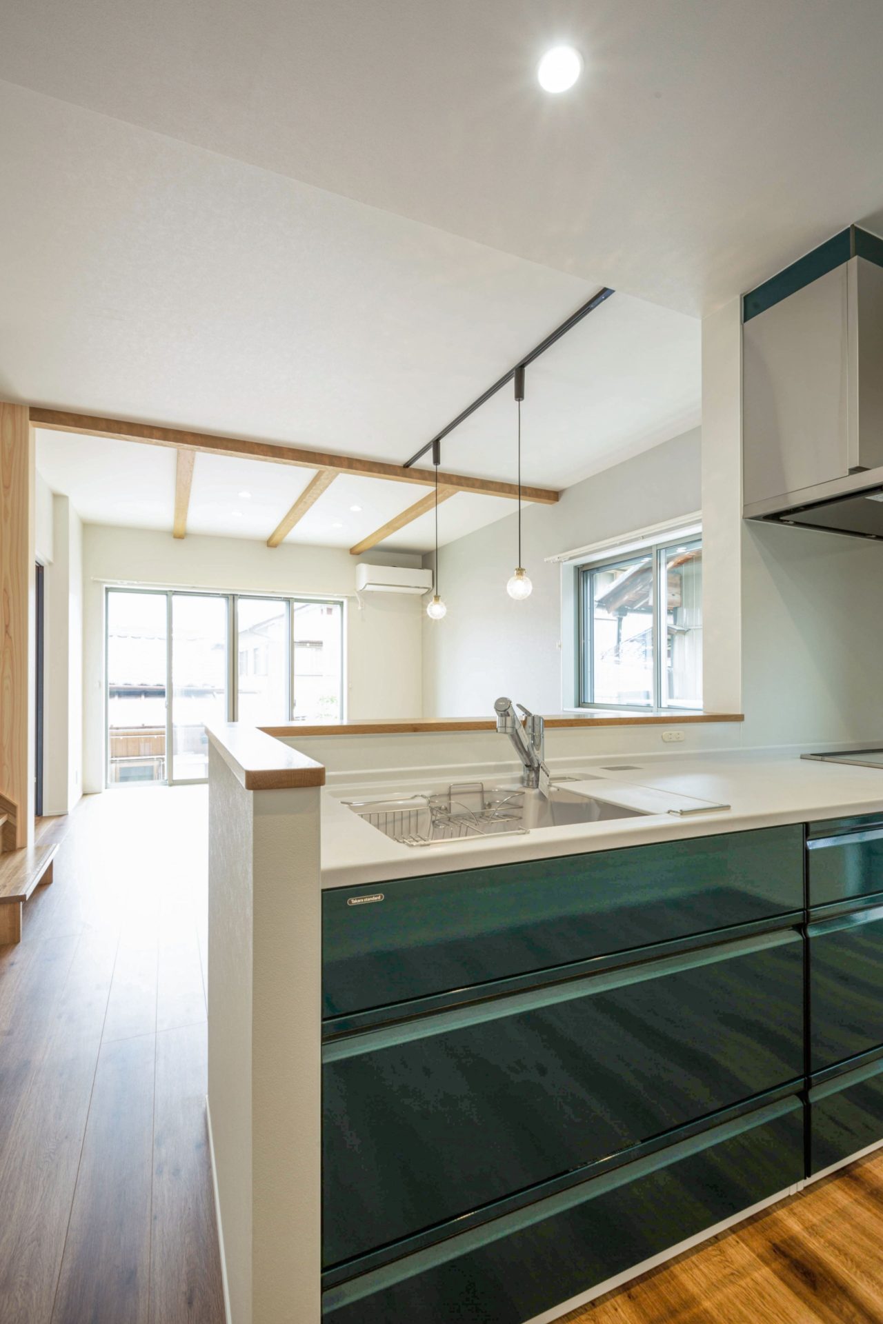 天井には、構造材の梁ではなく、造作で化粧梁材を後から取り付けました!