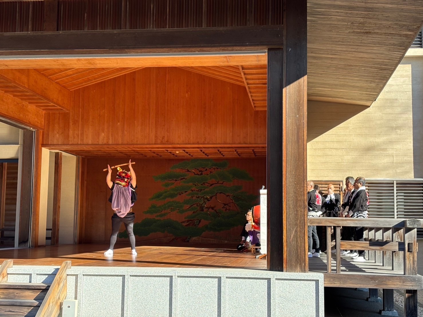獅子舞が登場する、宮入という演目があり、そこで太鼓をかついで登場しました!