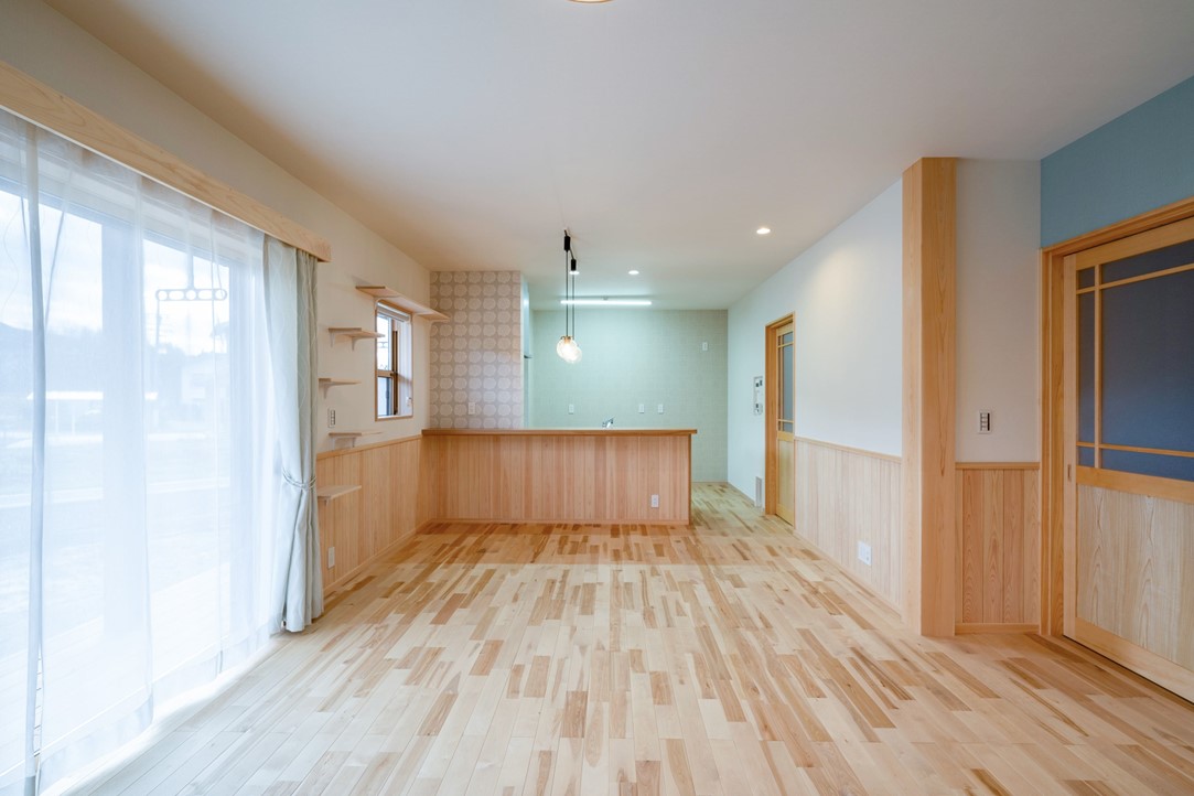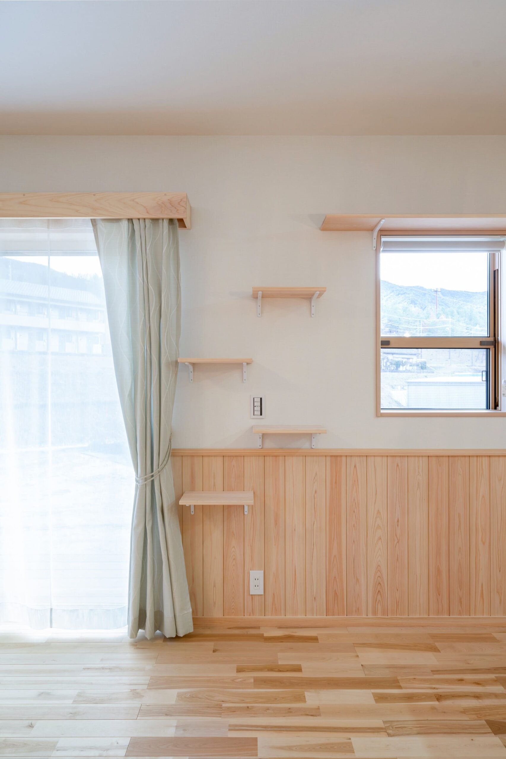 リビングは桧の腰板を施工したナチュラルな仕上がりになっています!