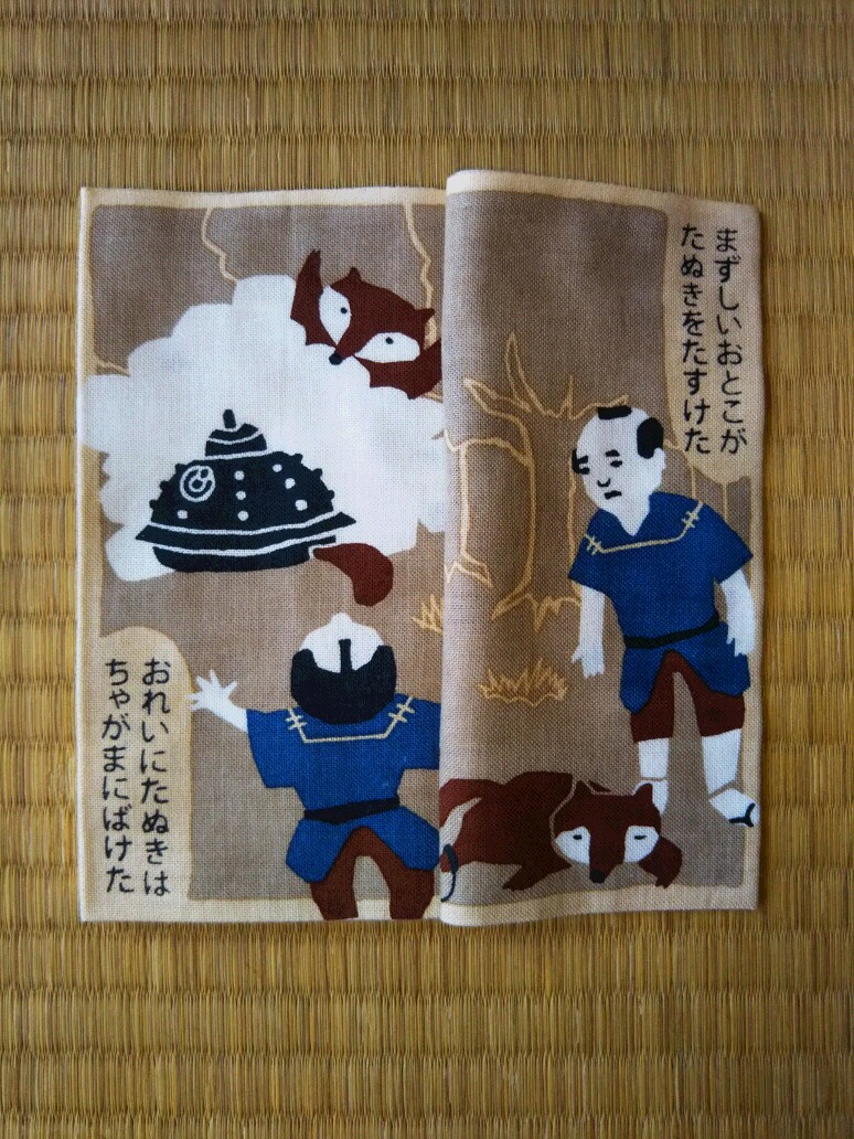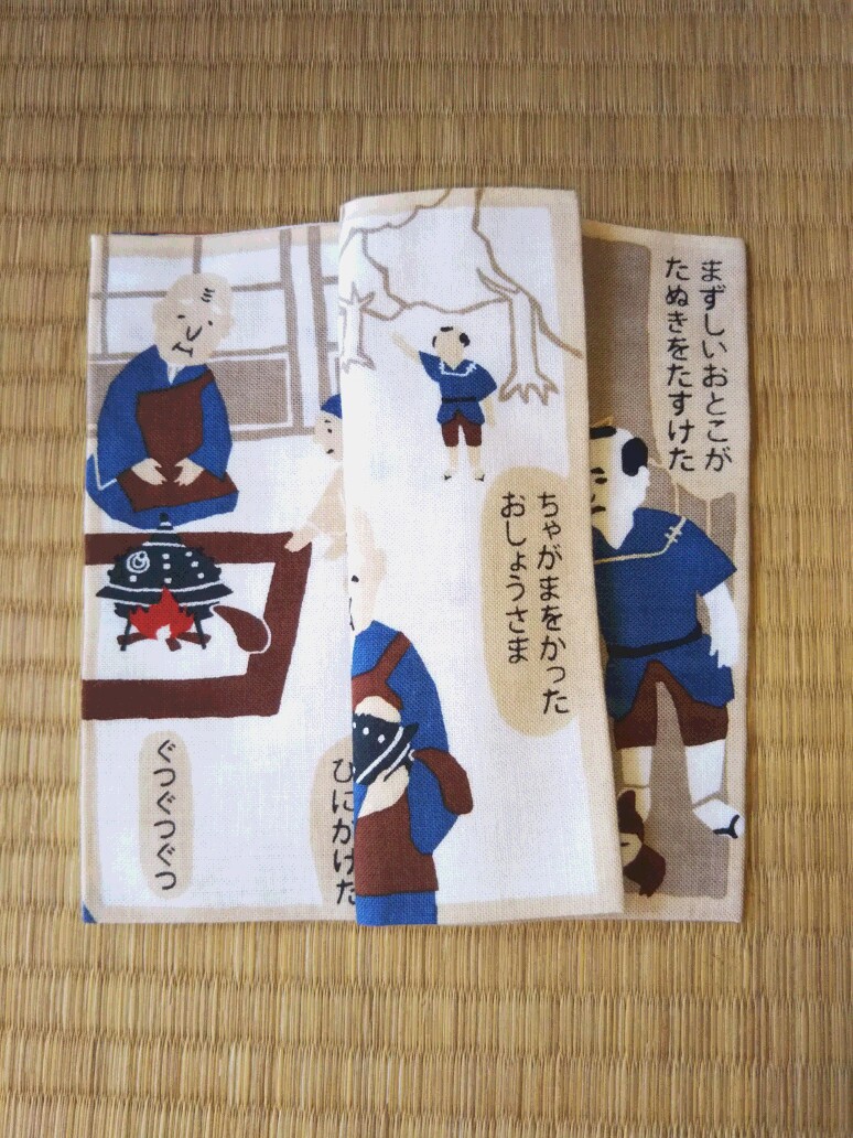 これは、1枚のてぬぐいがたたんで綴じてあり、絵本になっています。