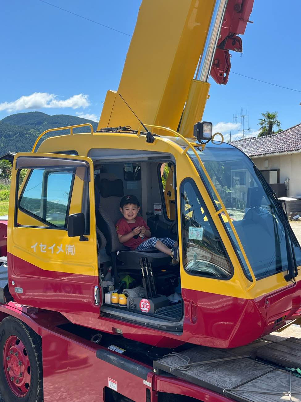 息子ちゃん、クレーンに乗せてもらって大喜び!!