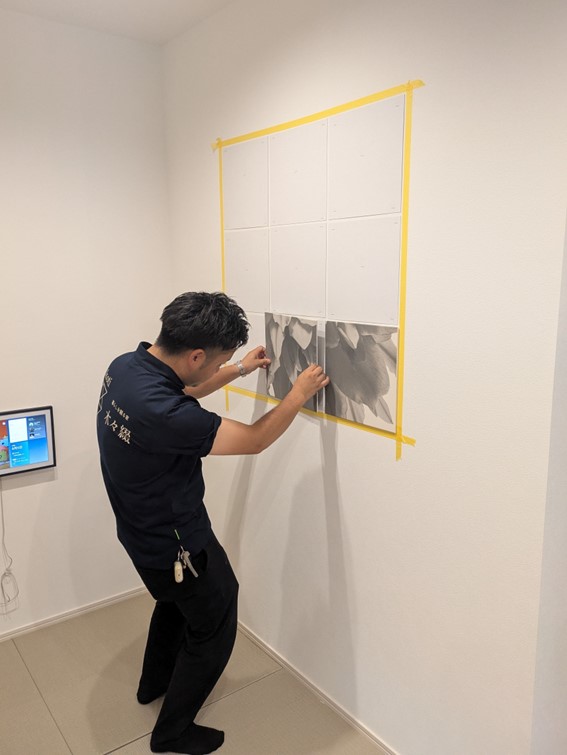 ②ベースシートと呼ばれる下地材を先程のテープに合わせ、