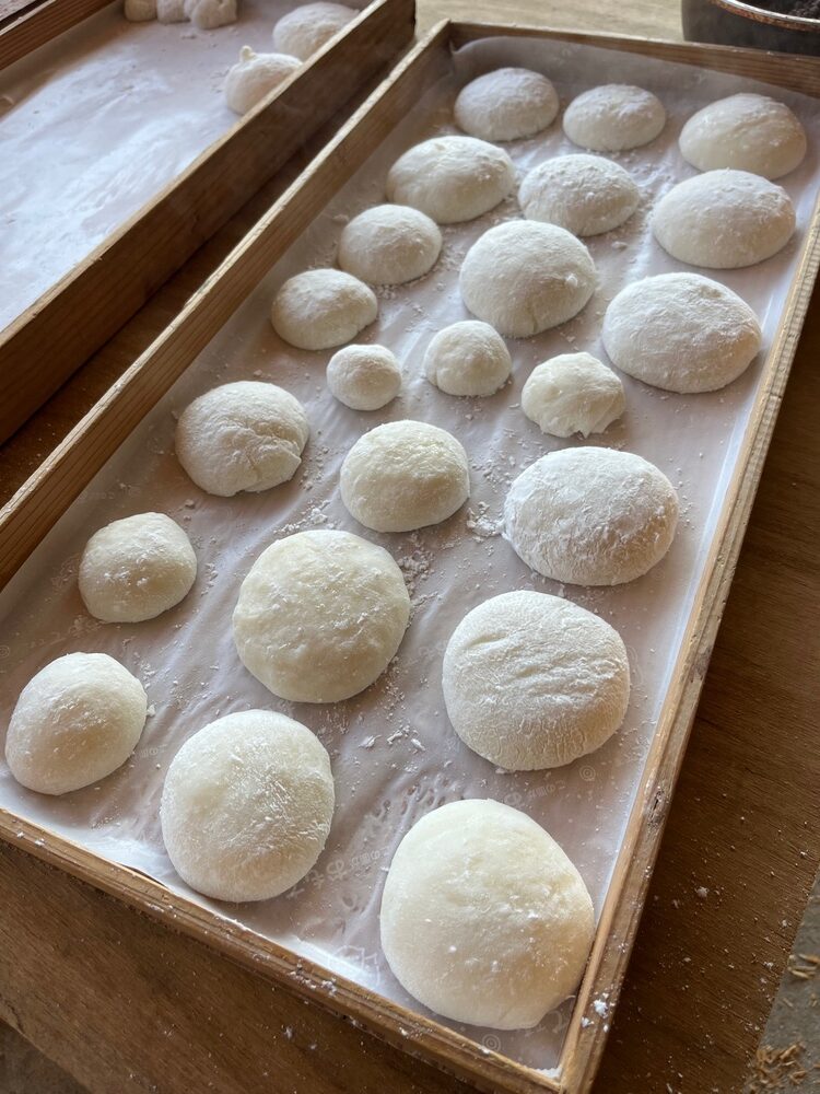 豆餅は、餅をつく際砂糖を入れて甘めに仕上げていきます。おやつ感覚でも食べられるので、子供に大人気です!