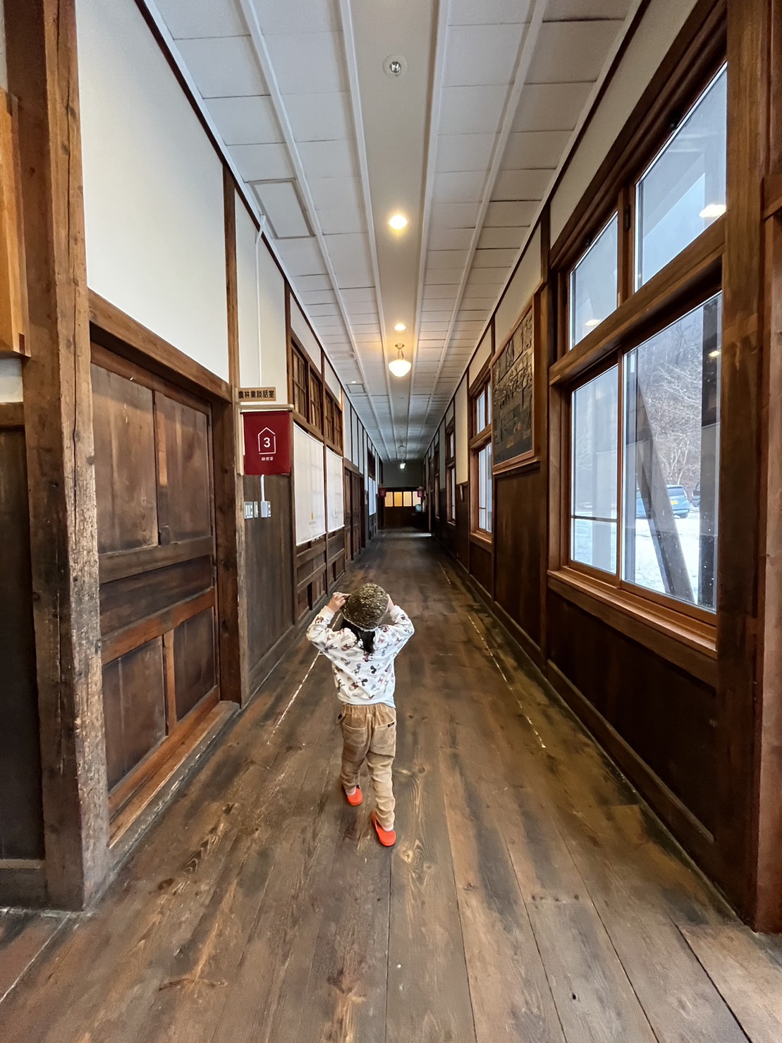 おもちゃ美術館は、校舎や体育館をリノベーションした施設になっていて、0ヶ月から小学生まで木のおもちゃで遊べる木育施設になっています。