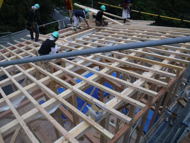 梅雨ということで、雨予報の中初日の建前は行われました。