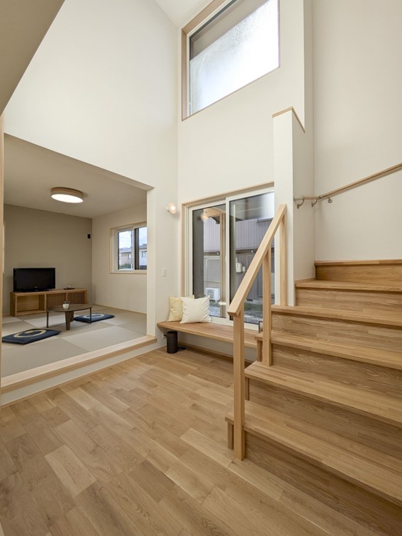 入った瞬間、木の温もりがふわっと広がる玄関!