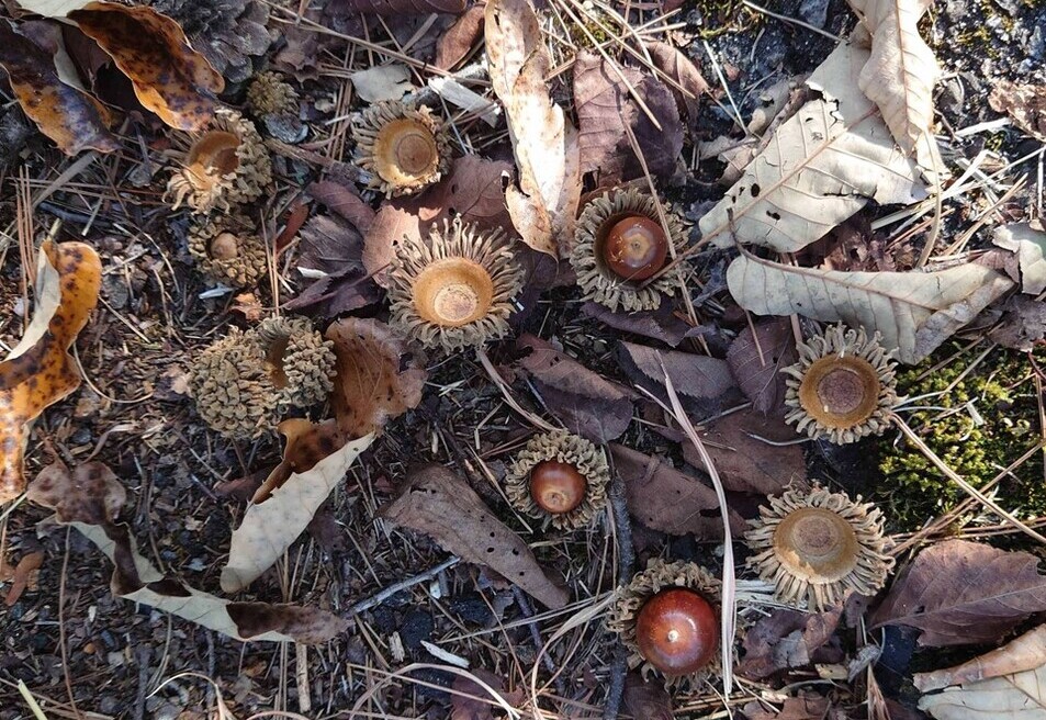 かりん等の果実、落ちているクノギの実やカラタチの垣根など