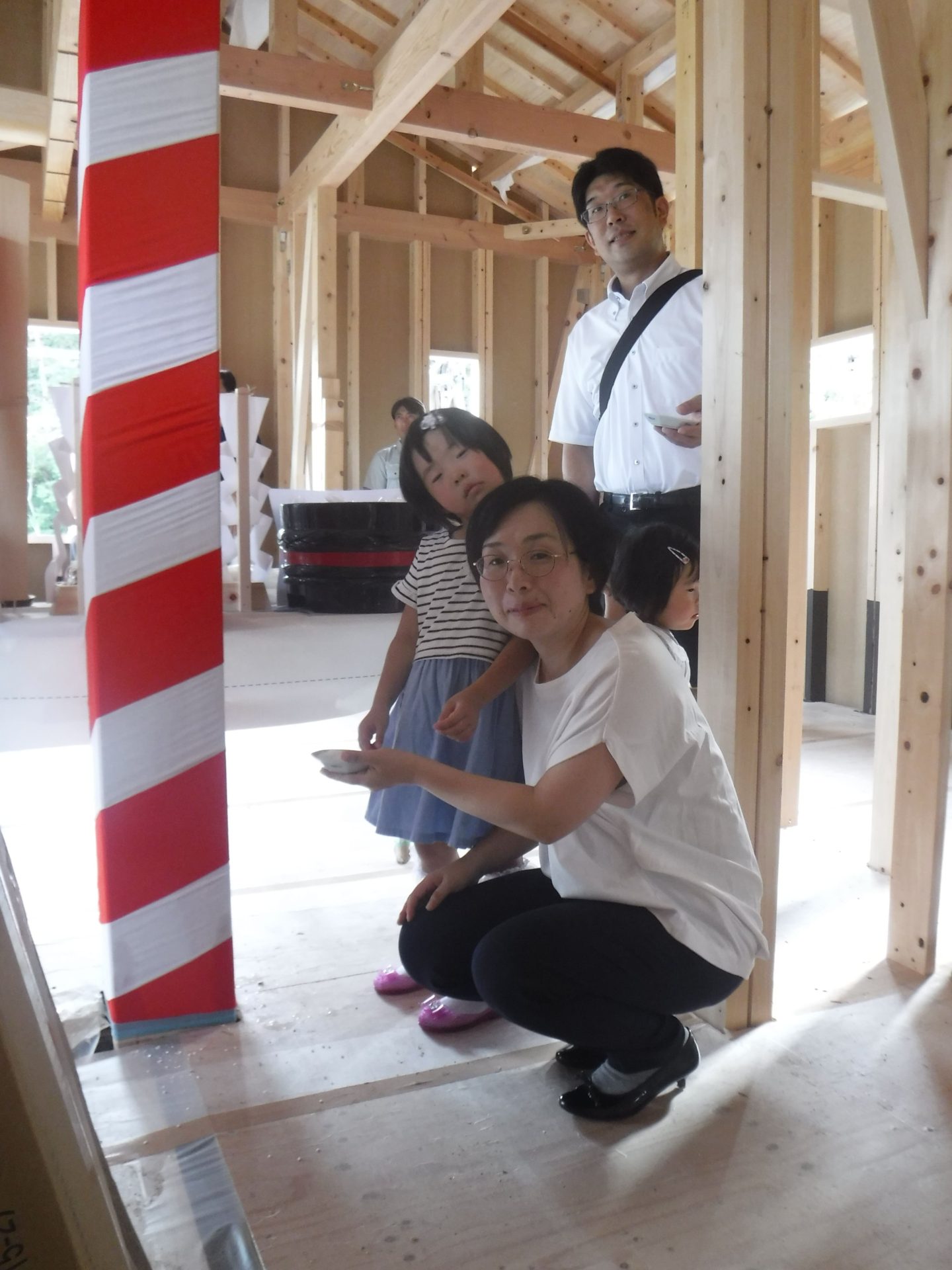 朝一番には、K様ご家族皆さんと、職人さん達で、本日のお祝いと安全祈願を皆さんで、祈念し工事に取り掛かります。