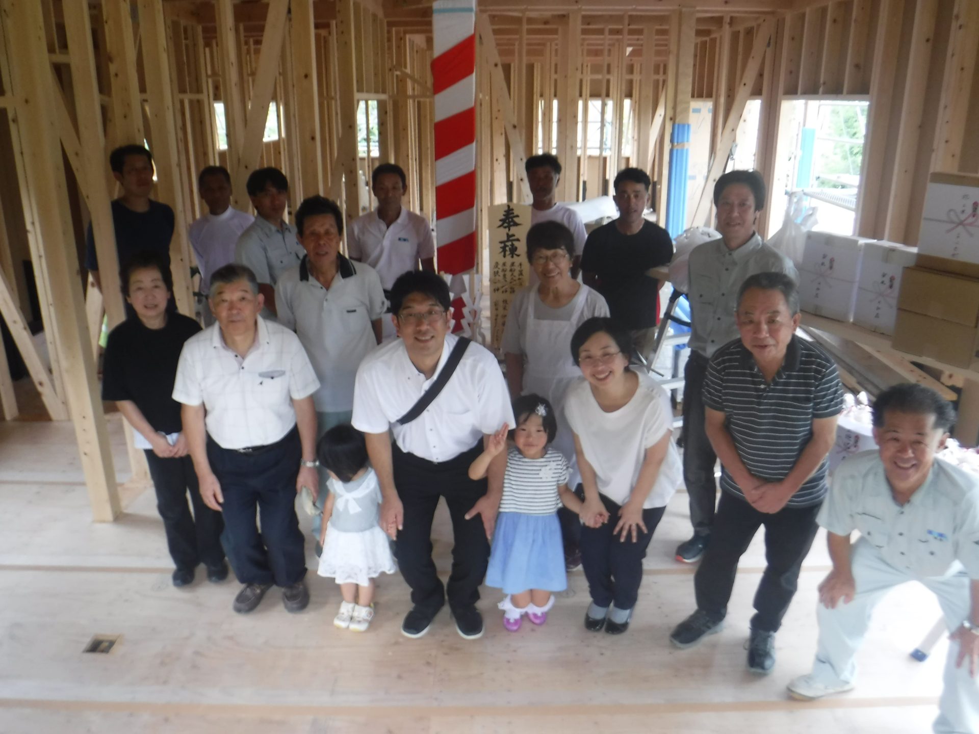 棟梁にて上棟式をしていただき、工事の安全とT様ご家族様の繁栄を祈願させていただきました。