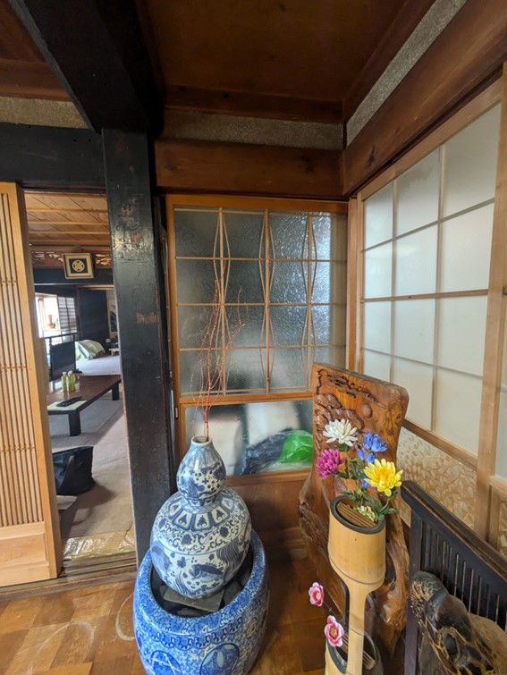 お父様から、こちらの黒い梁と柱は300年前のものだとお話しをいただきました。