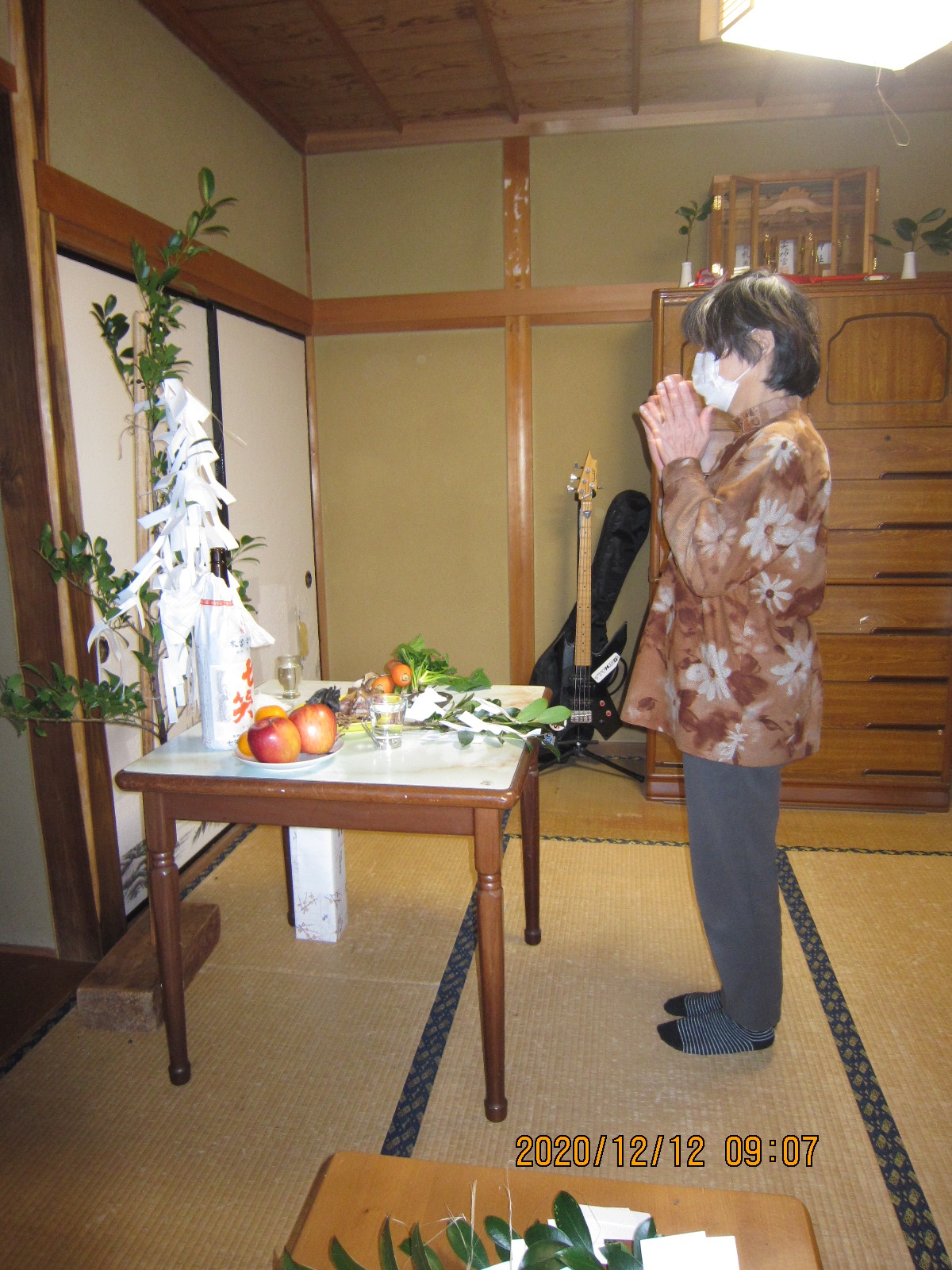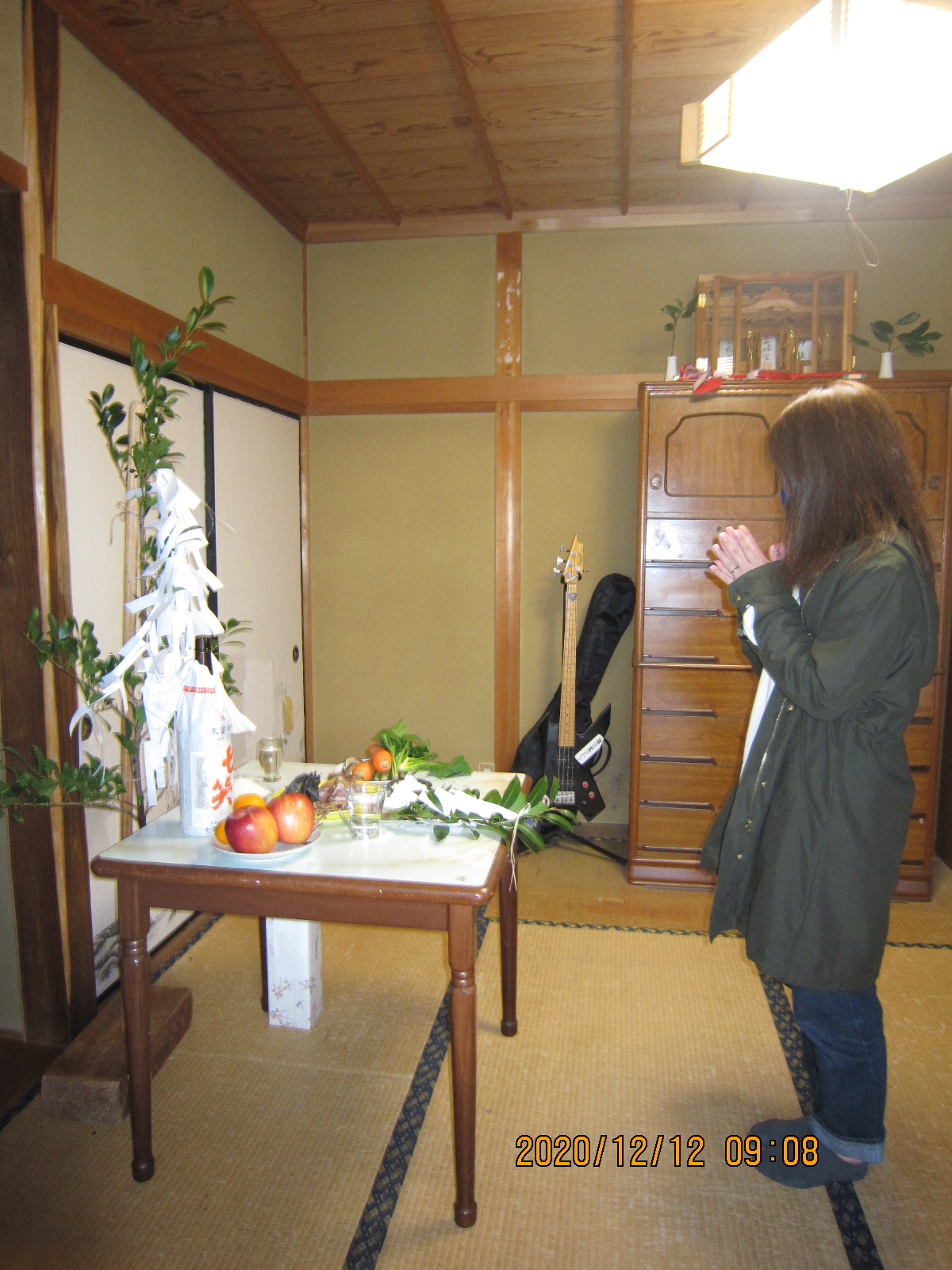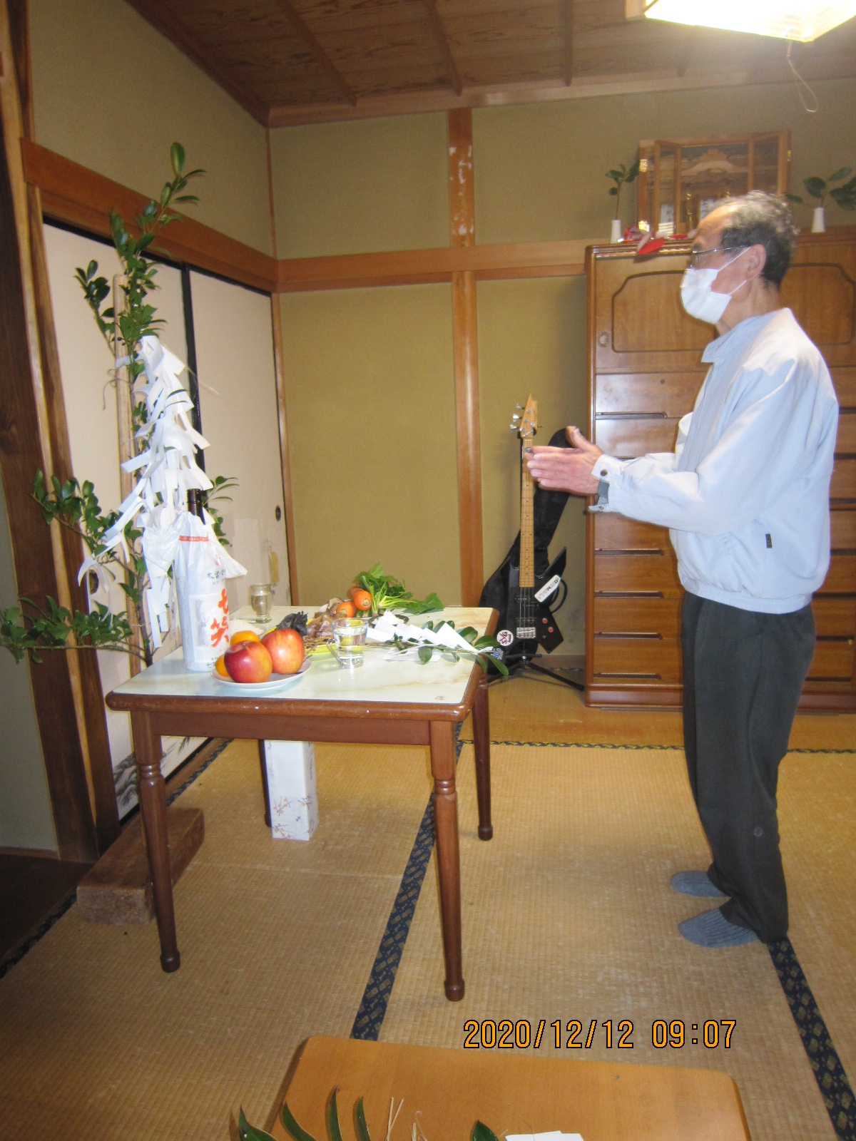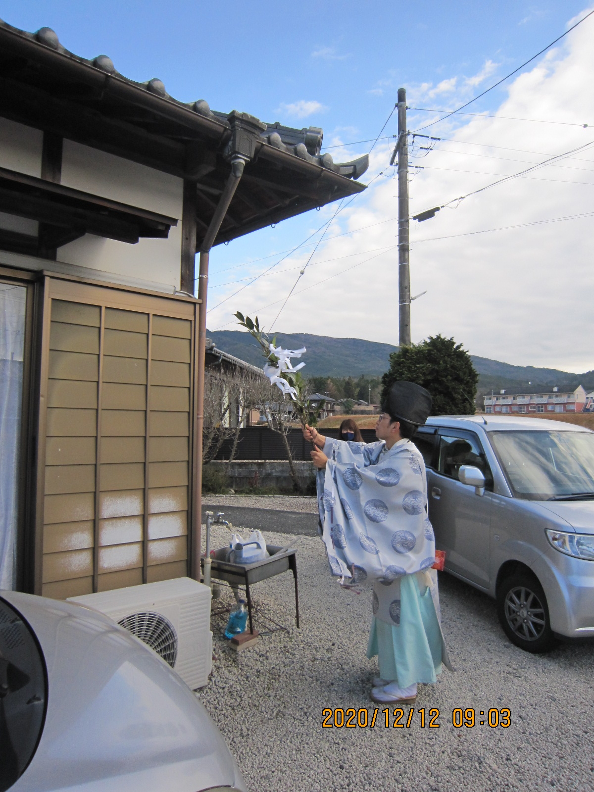 師走の晴れの清々しい空気の中、神明神社宮司の祝詞がひびき渡り、建物の神様に工事の報告し、