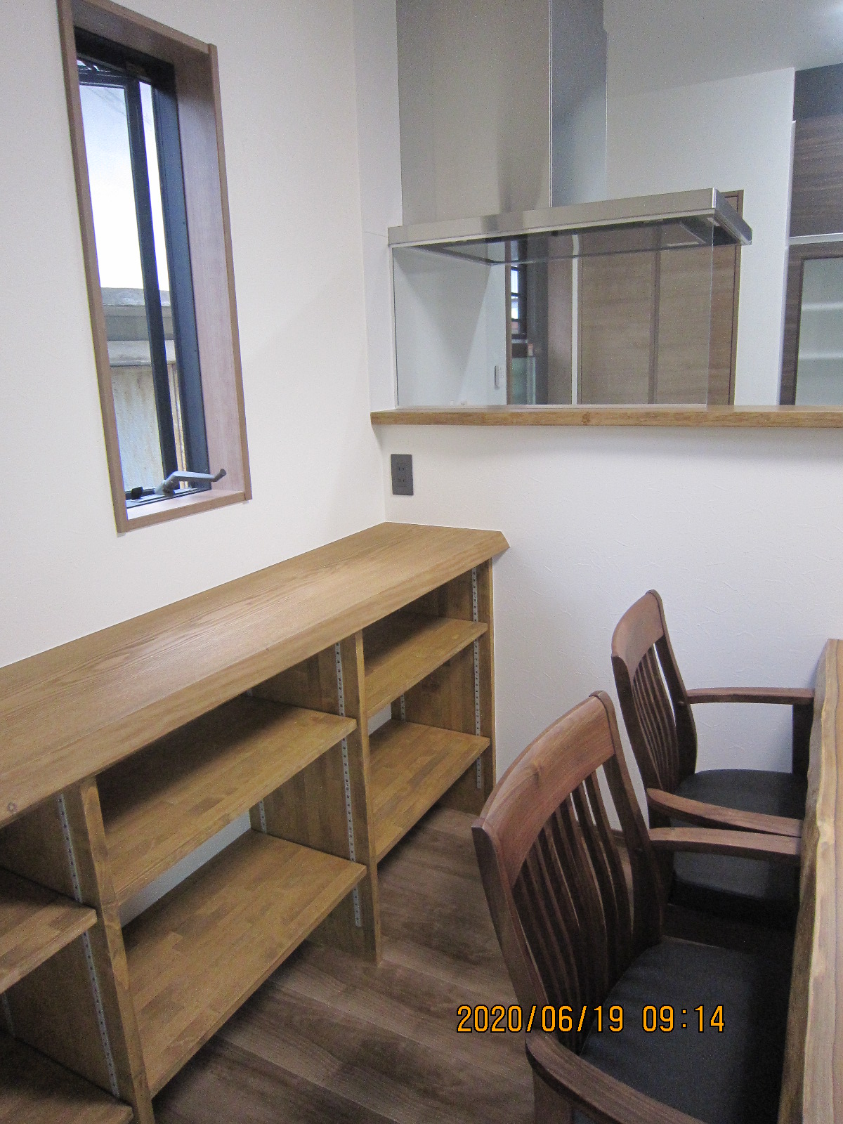 作製のTVカウンターとキッチンカウンターにも無垢板を使用させていただきました。