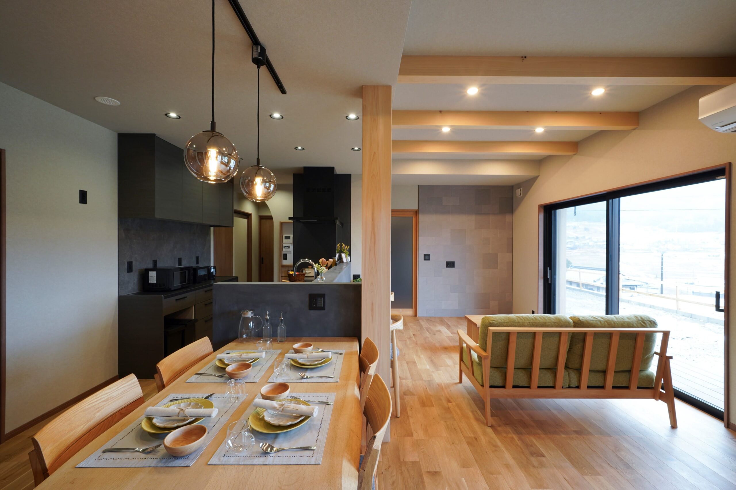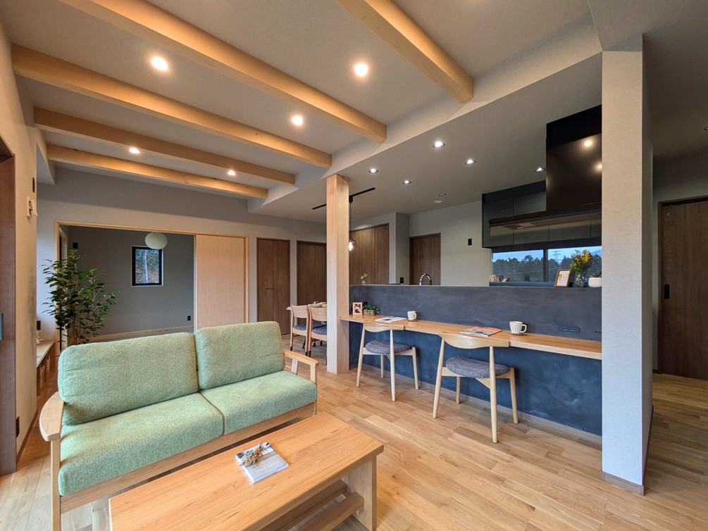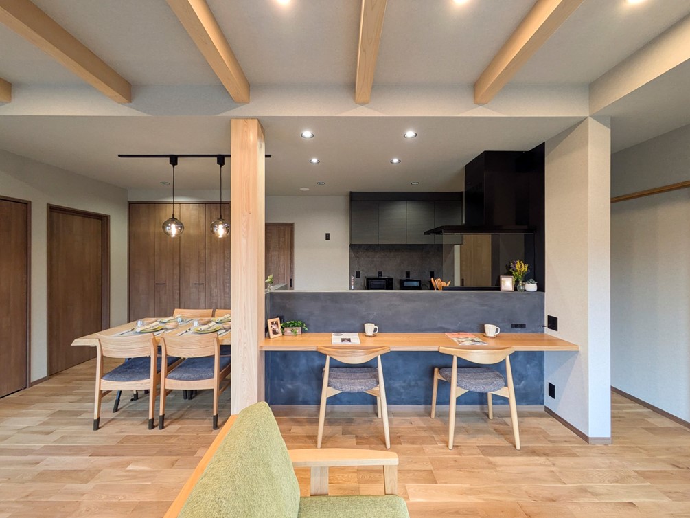 空間を彩る化粧梁、足触りのいい無垢床、LDKの中心には大黒柱など