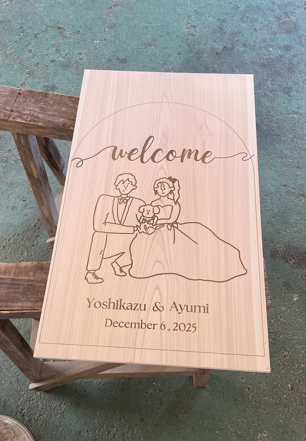 2025.12.20 ウェルカムボード カテゴリー インテリア 加藤 タグ インテリア作品 社員の日常 こんにちは!インテリア部の加藤です。 結婚式で使用するウェルカムボードを作成いたしました! サイズはA2くらいの大きめサイズ エントランスに飾った際に目に入りやすい大きさで、節があった部分には埋木をしてあります。 素敵な結婚式になることを願って作成させていただきました! ありがとうございました!