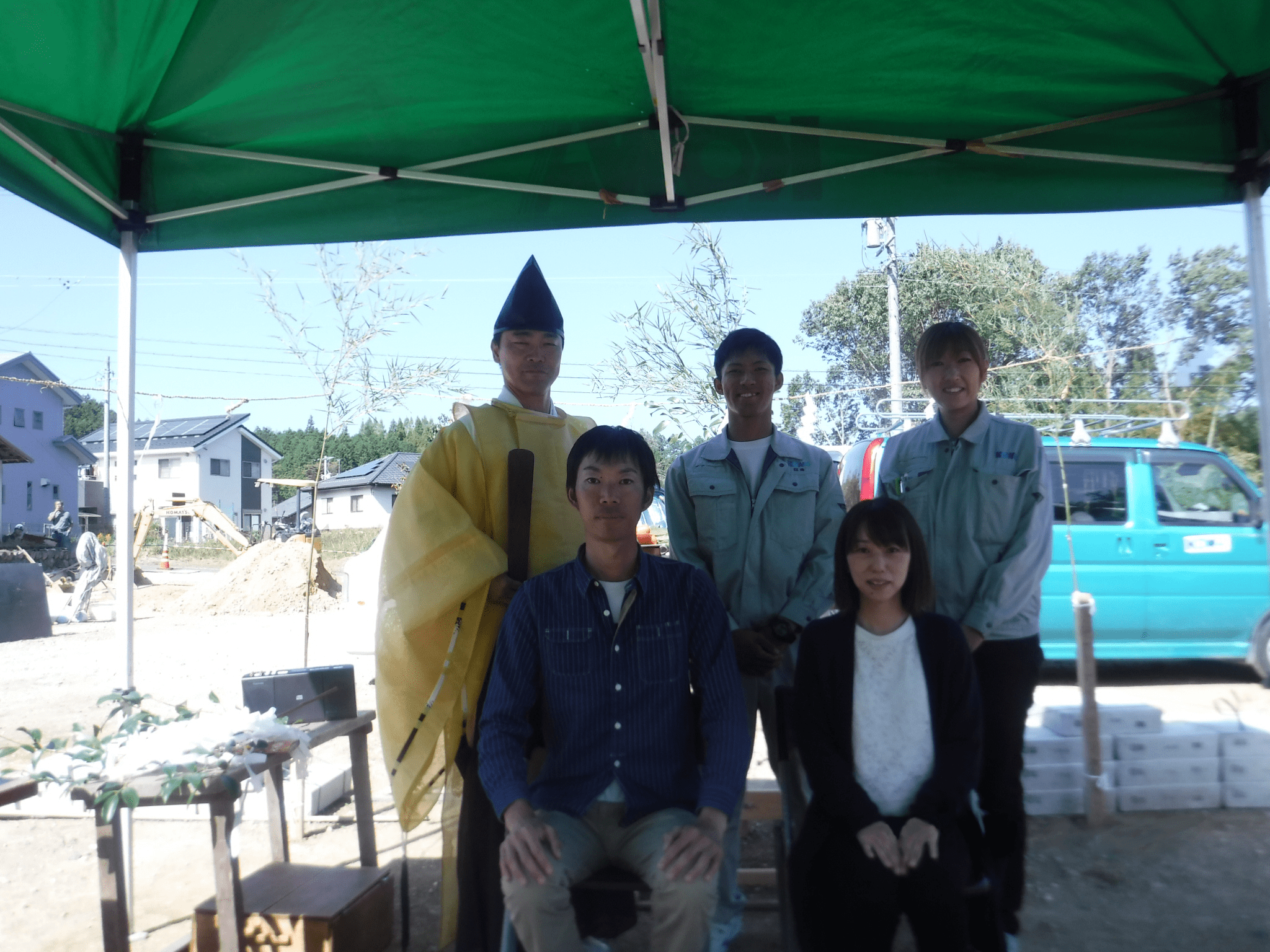T様も雨を心配されたましたが、お天気の中の地鎮祭となりました。
