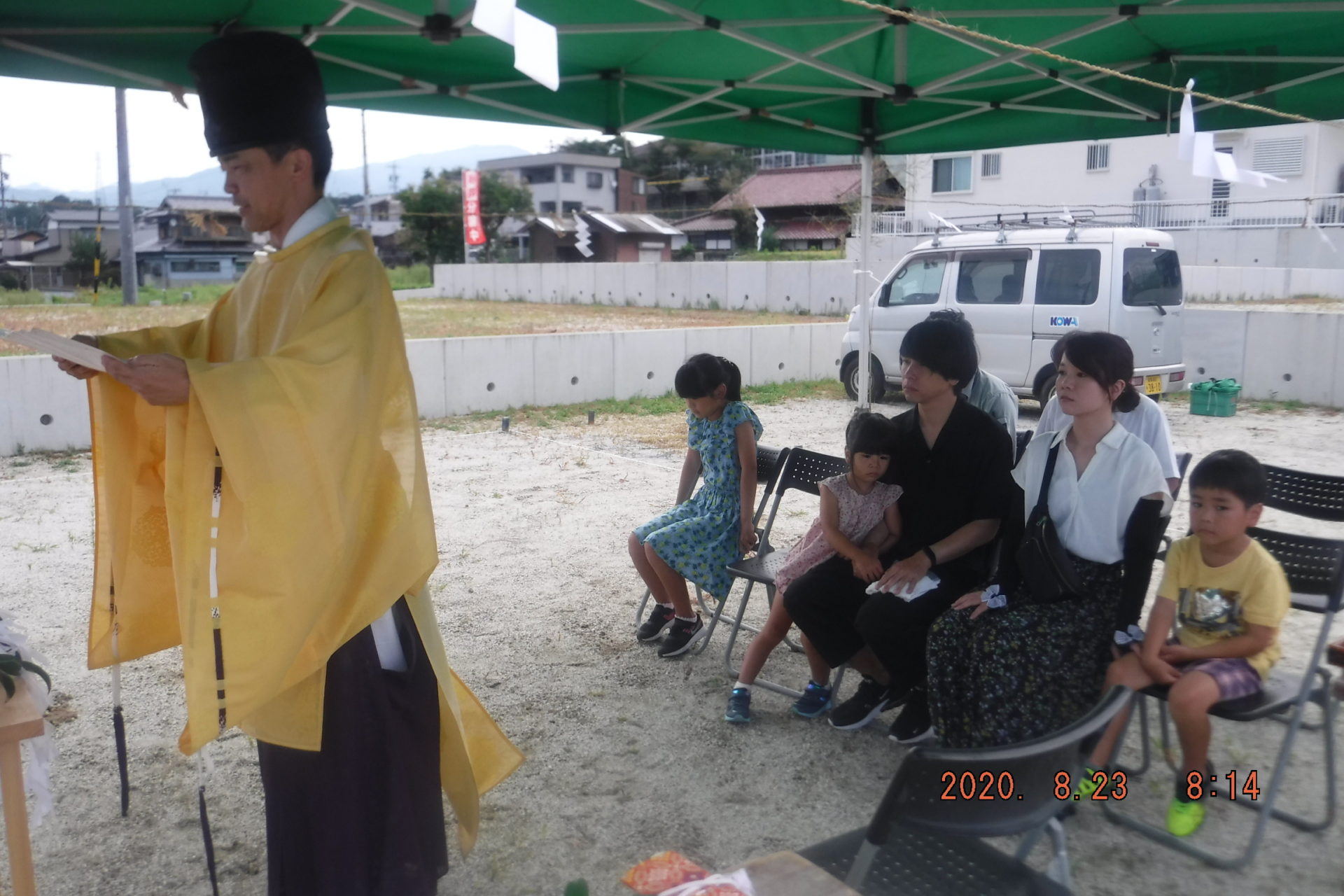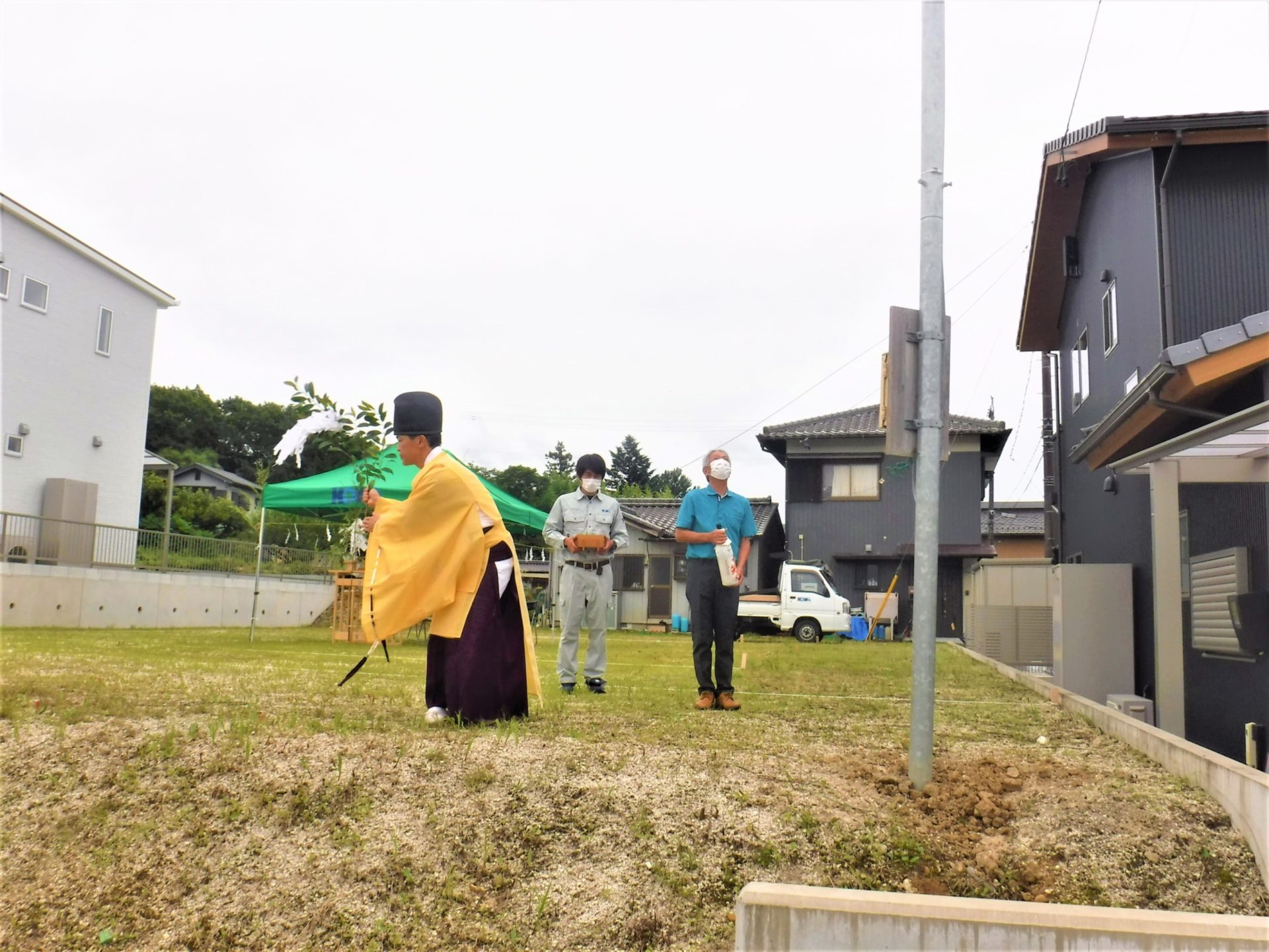 土地の神様を鎮めて貰い、完成までの無事故と住まいする家族の繁栄を祈願して頂きました。