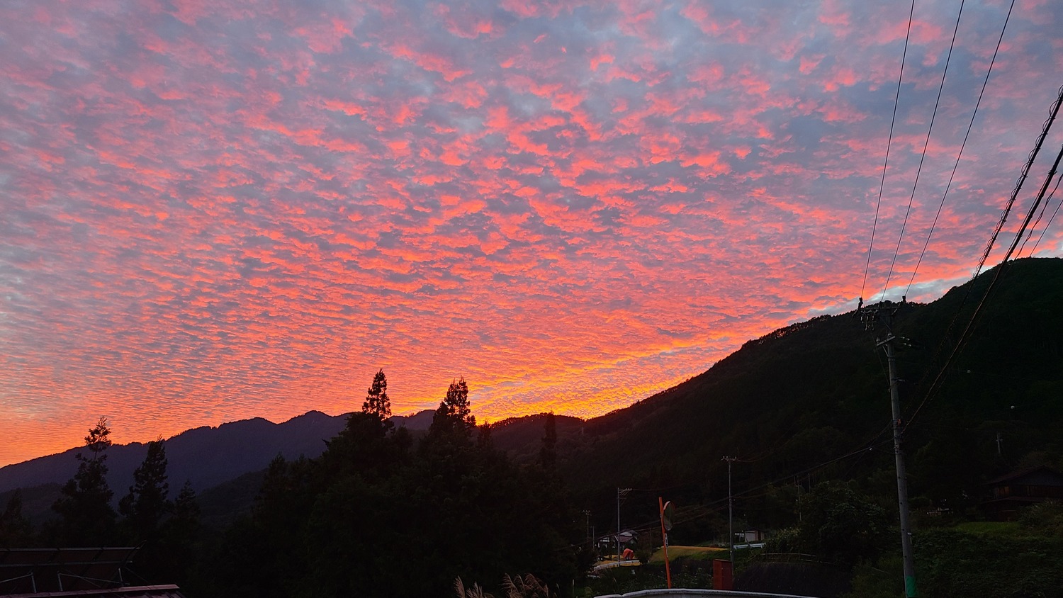 空一面が茜色に染まっているのに気づきました。