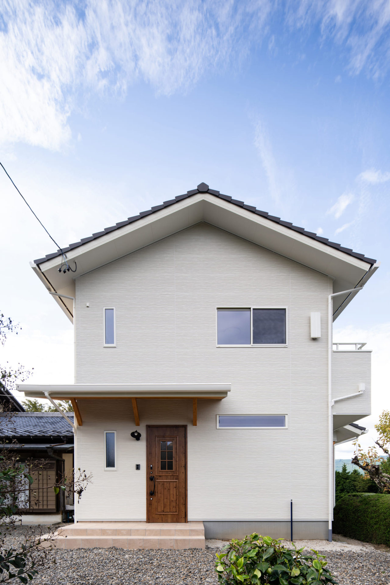 正面にはコラベルタイルを施工し、より北欧仕上げになっています!