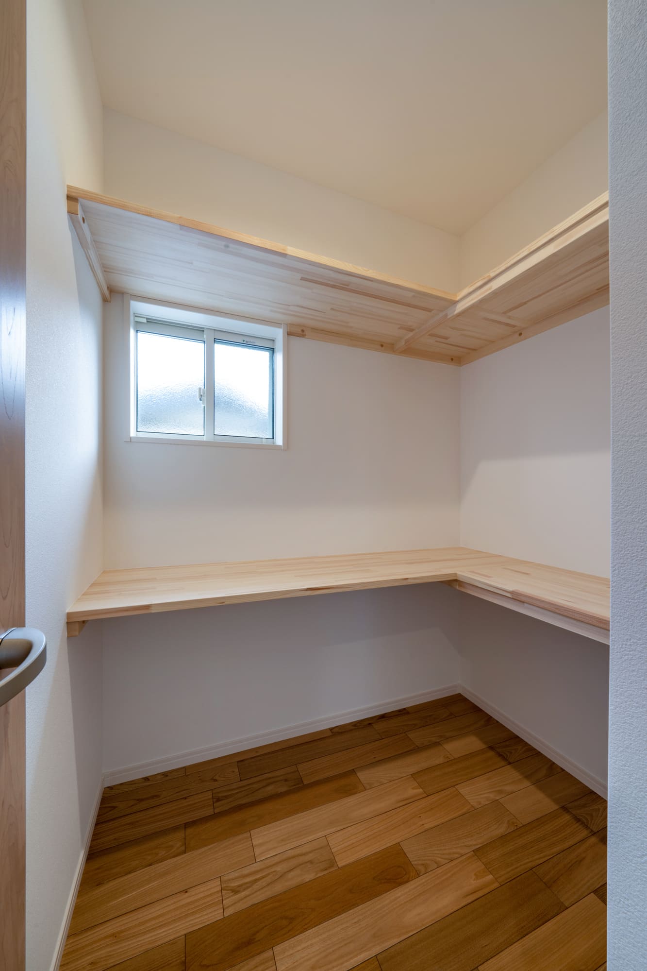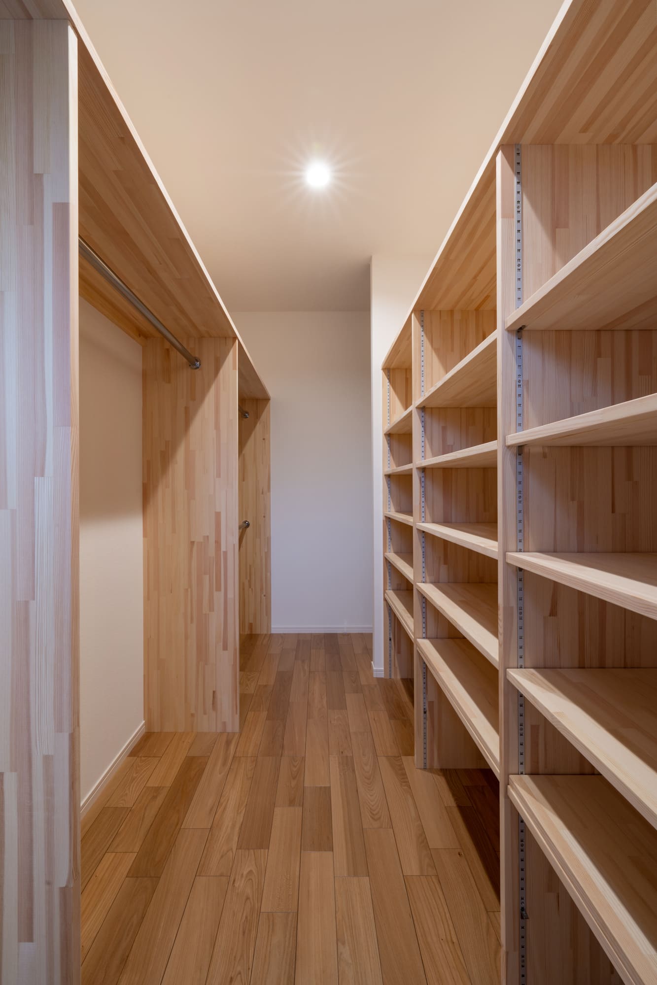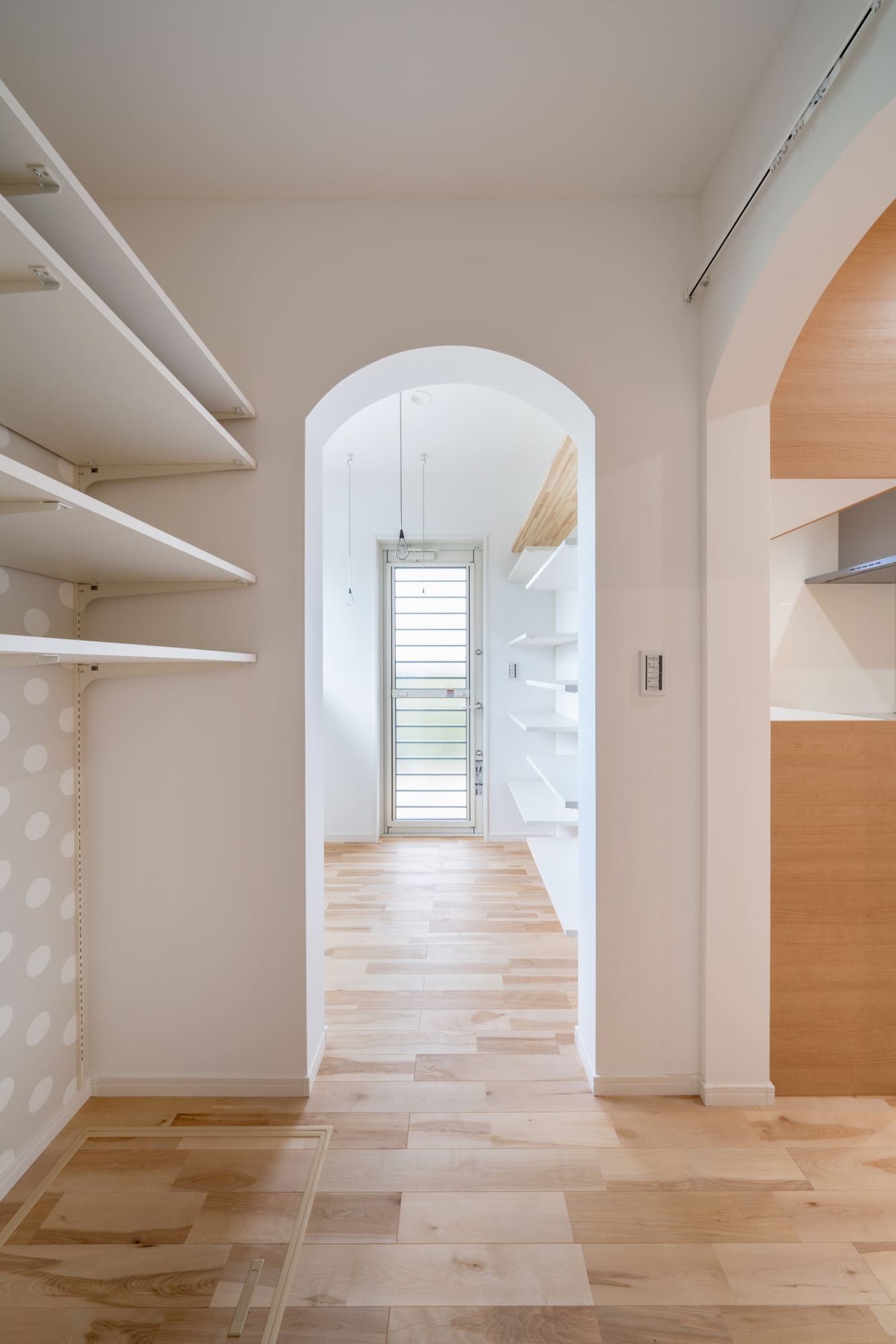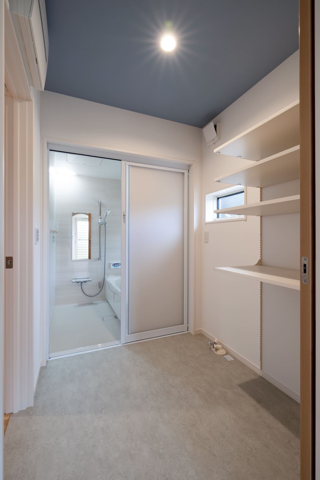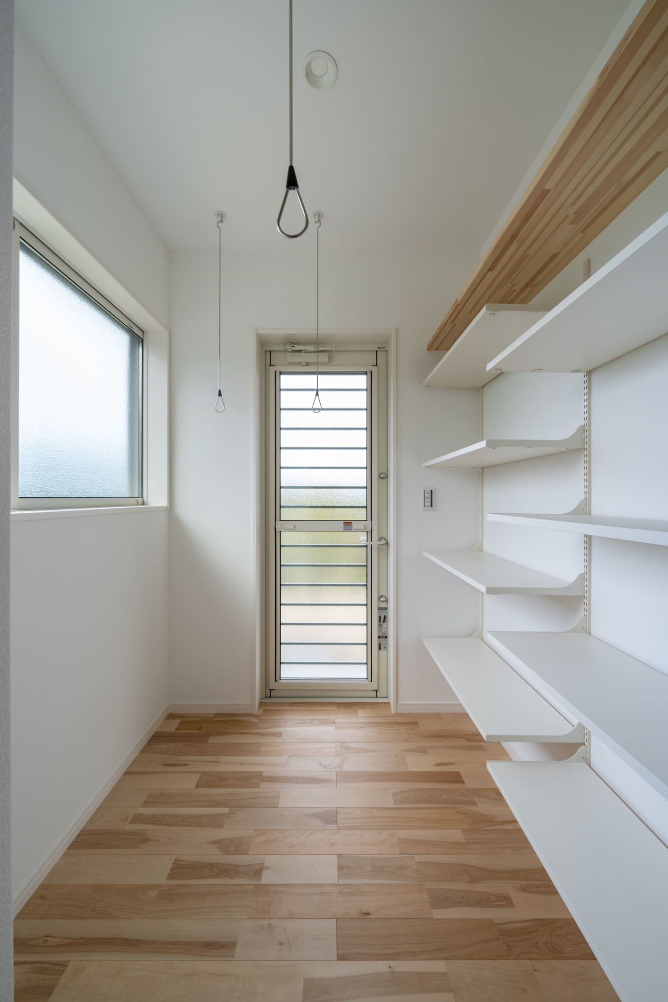最近どのお客様もこだわっている家事同線ですが、A様邸はキッチンから、独立したパントリー、物干しスペース、脱衣室が直線に配置されているので、最短距離で家事をすることができます。