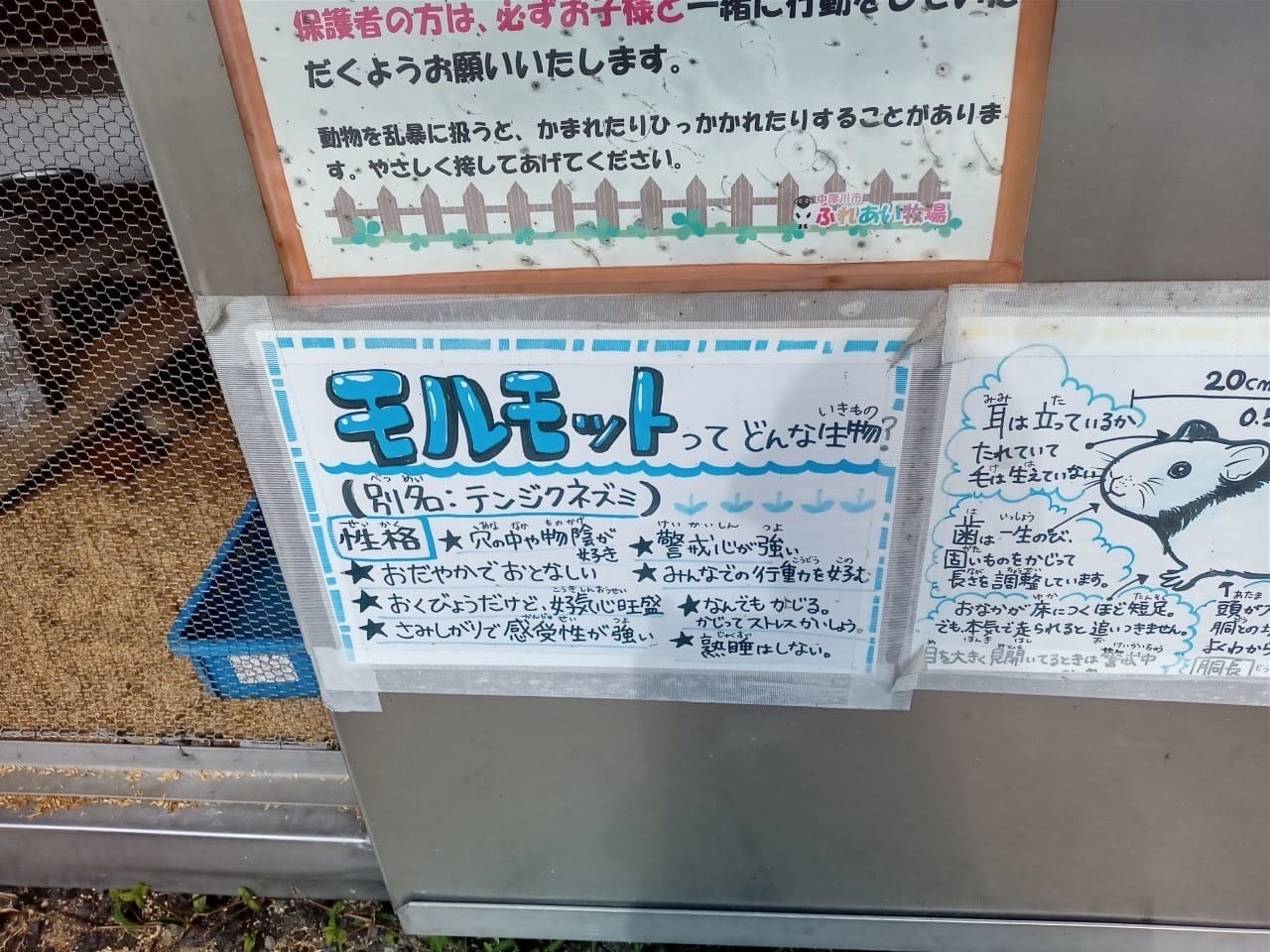 ヤギやウマ、ウサギやモルモットなどに野菜を与えることができる場所があり、