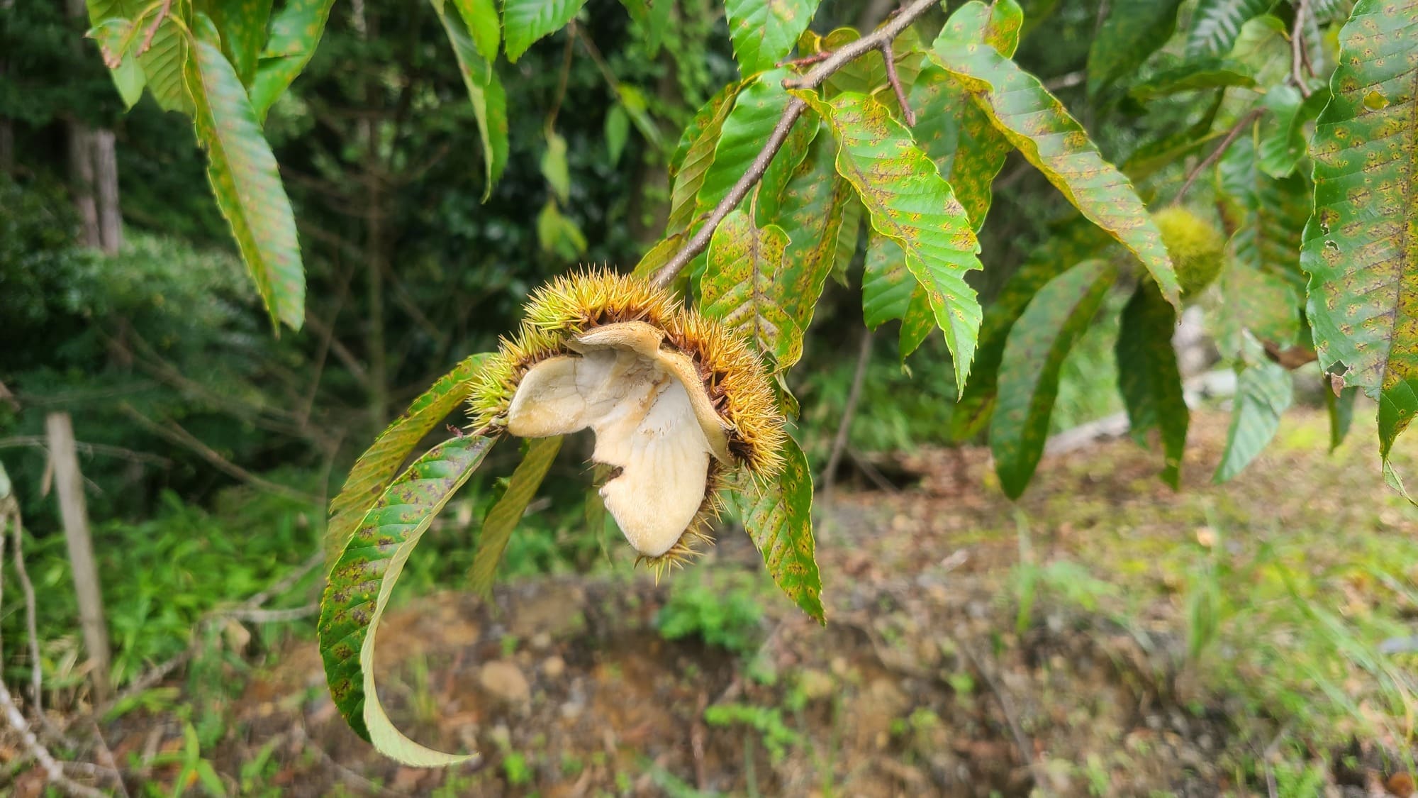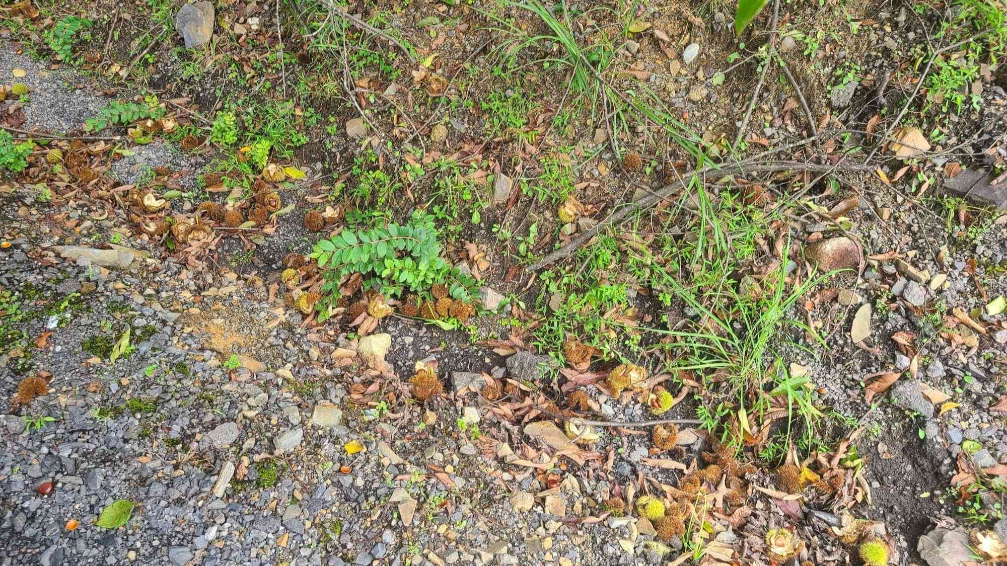 写真ではわかりづらいですが、イガグリの中にある栗のみが落ちていました。