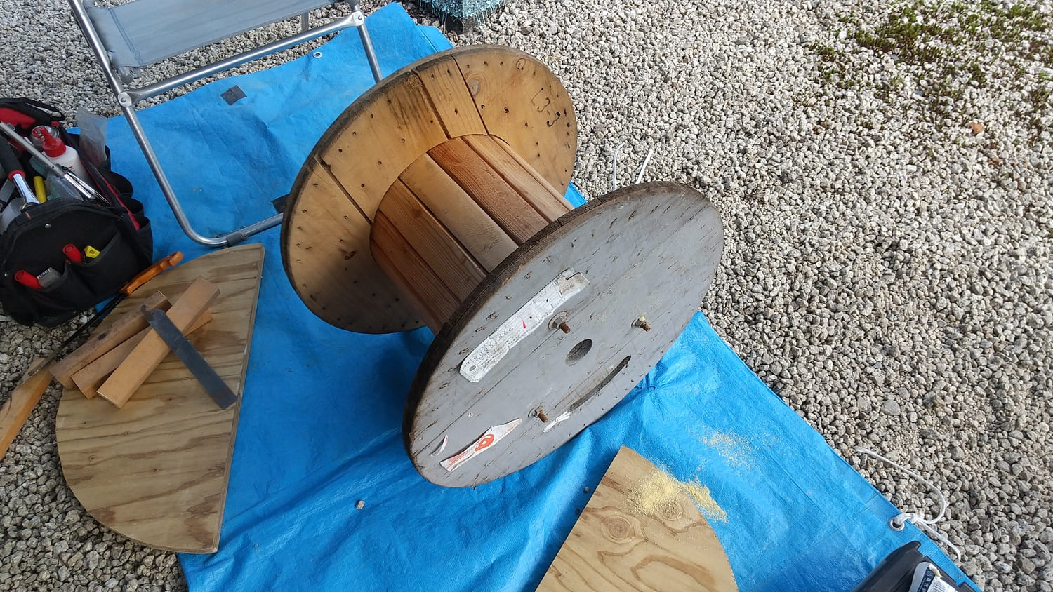 阿智村グランピング工事で出たケーブルドラムを電気屋さんから