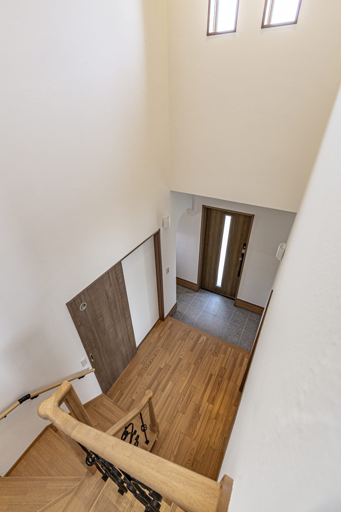 2階に上がると、吹き抜け空間より、各子供部屋に動線を考慮した造りになっています。
