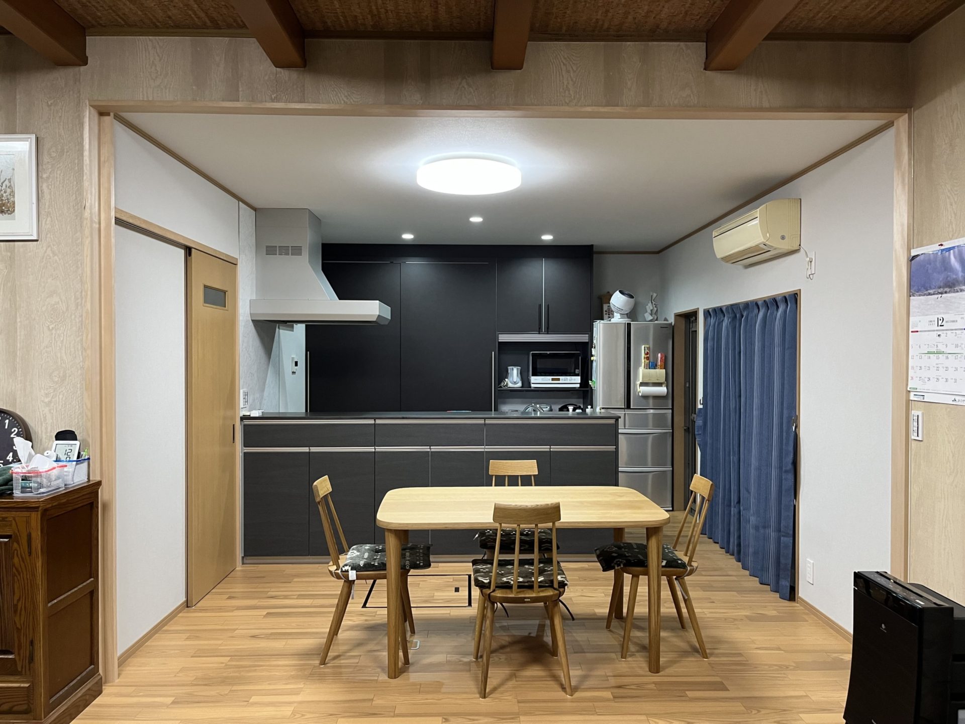 壁ごと解体し一体の空間として生活できるよう工事を行いました。