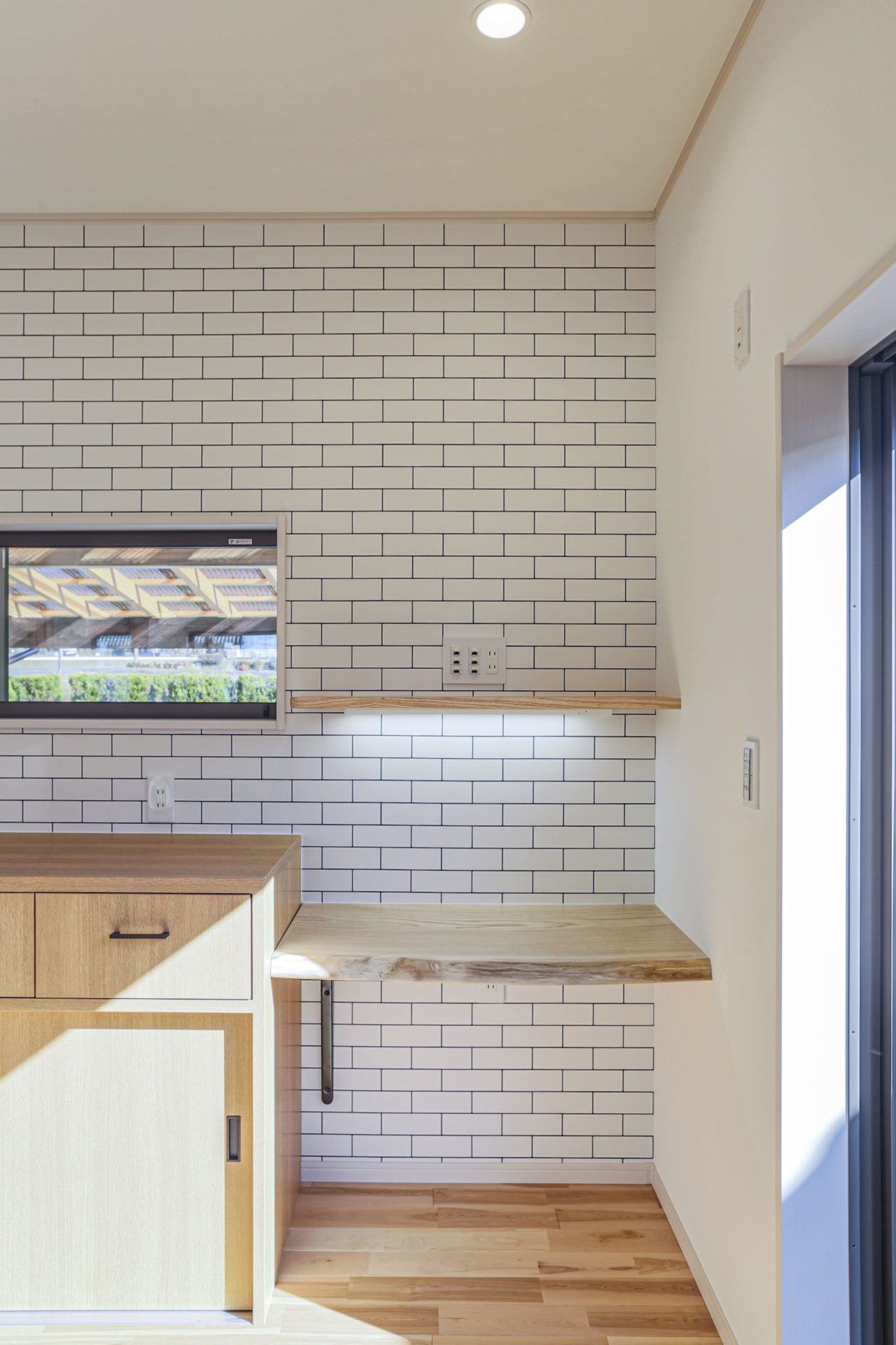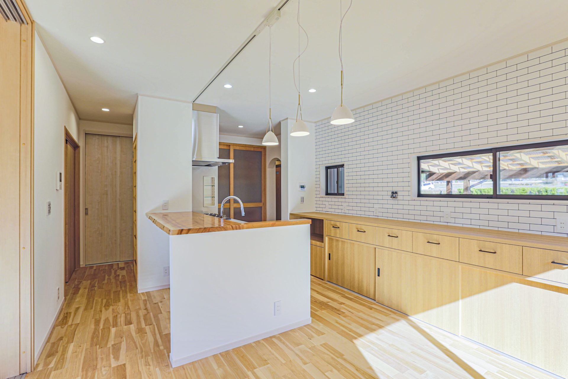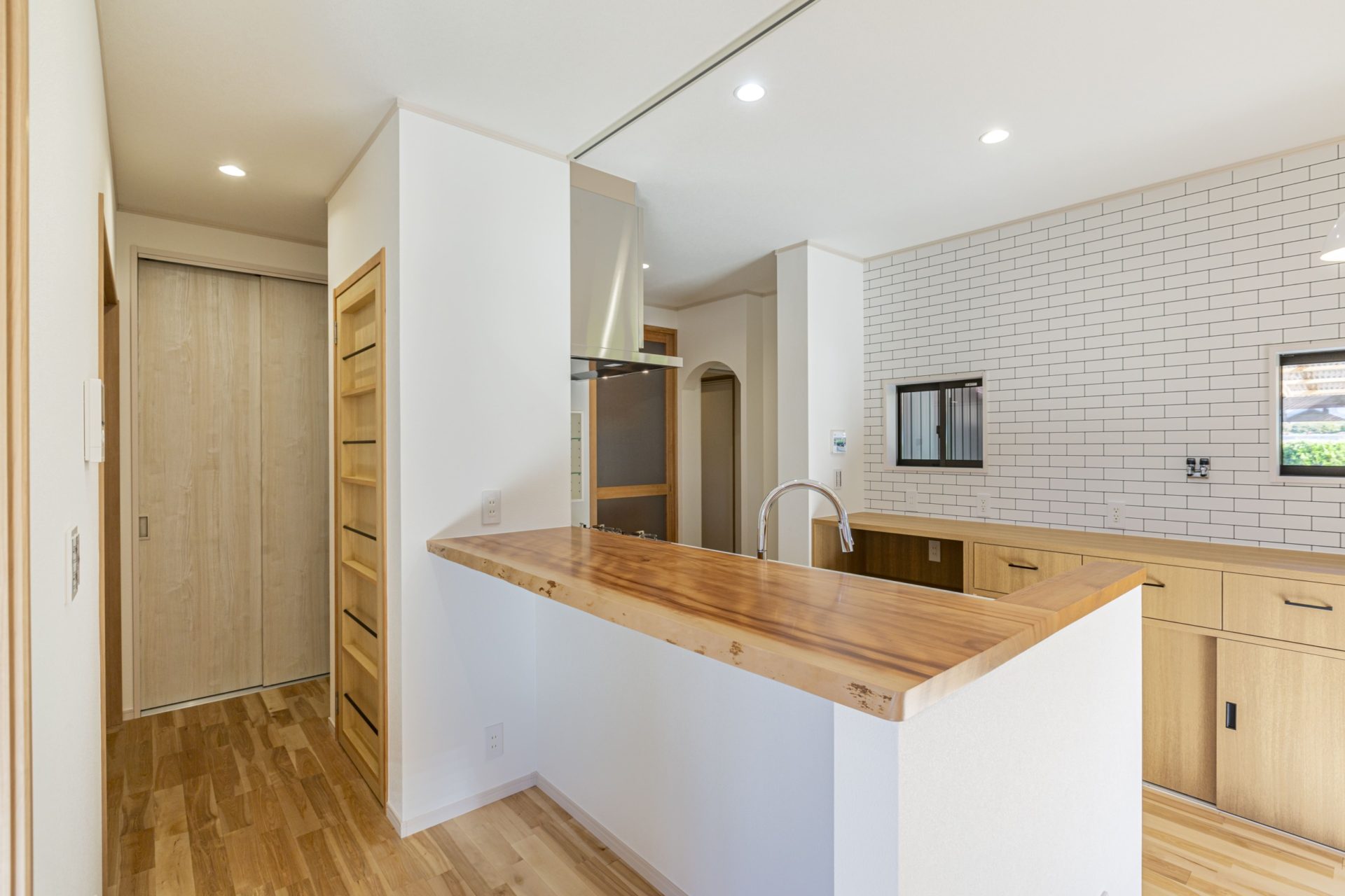 キッチンの正面には、ブラックチェリーの無垢カウンターがあります。