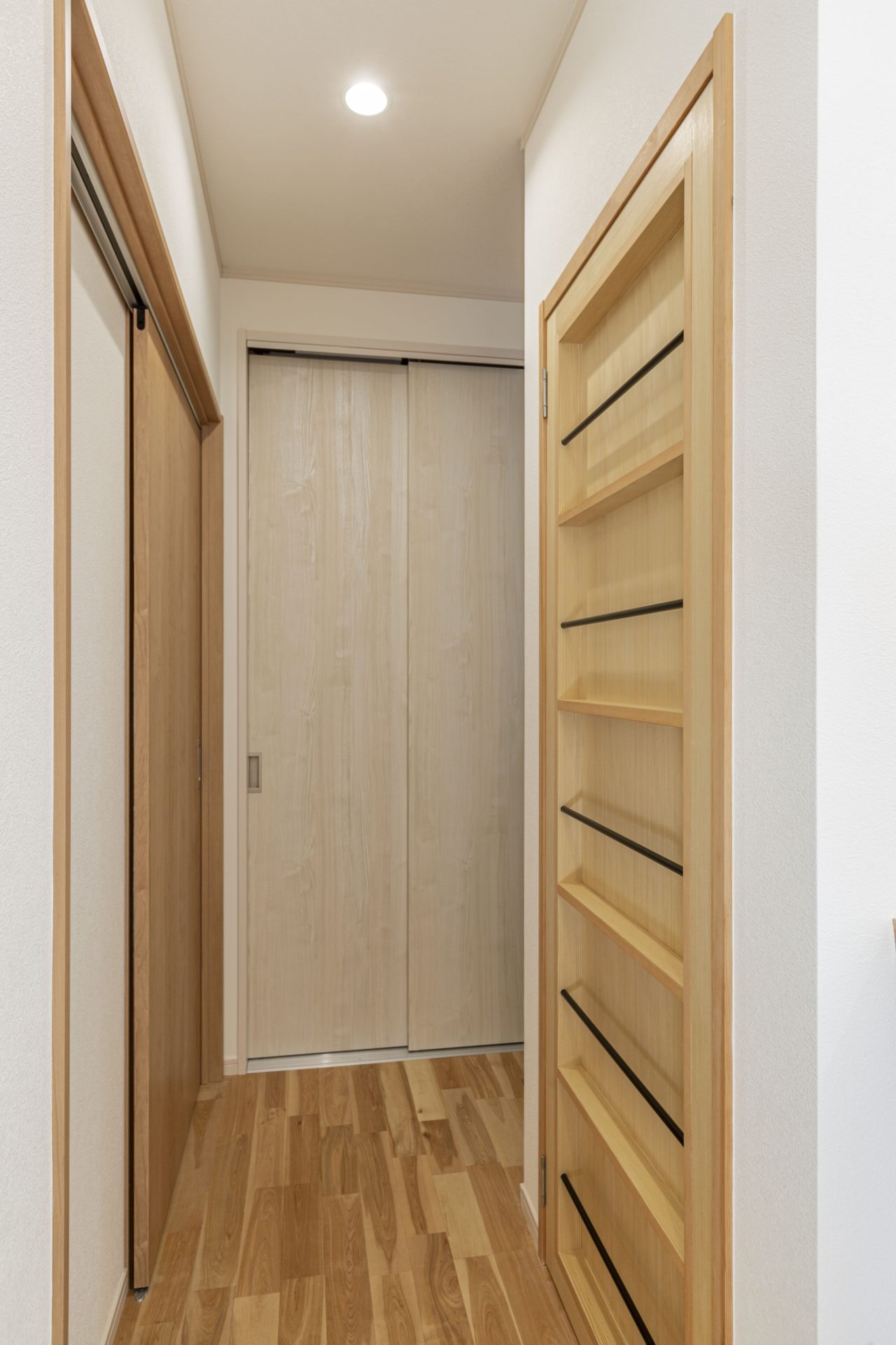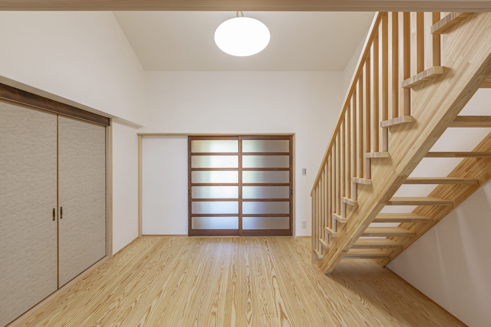 玄関正面には、杉のフローリングと珪藻土で仕上げた和モダンな客間があります。