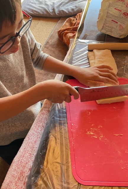 たたんで切ります…が、次男よ、かなり太めやぞ‼