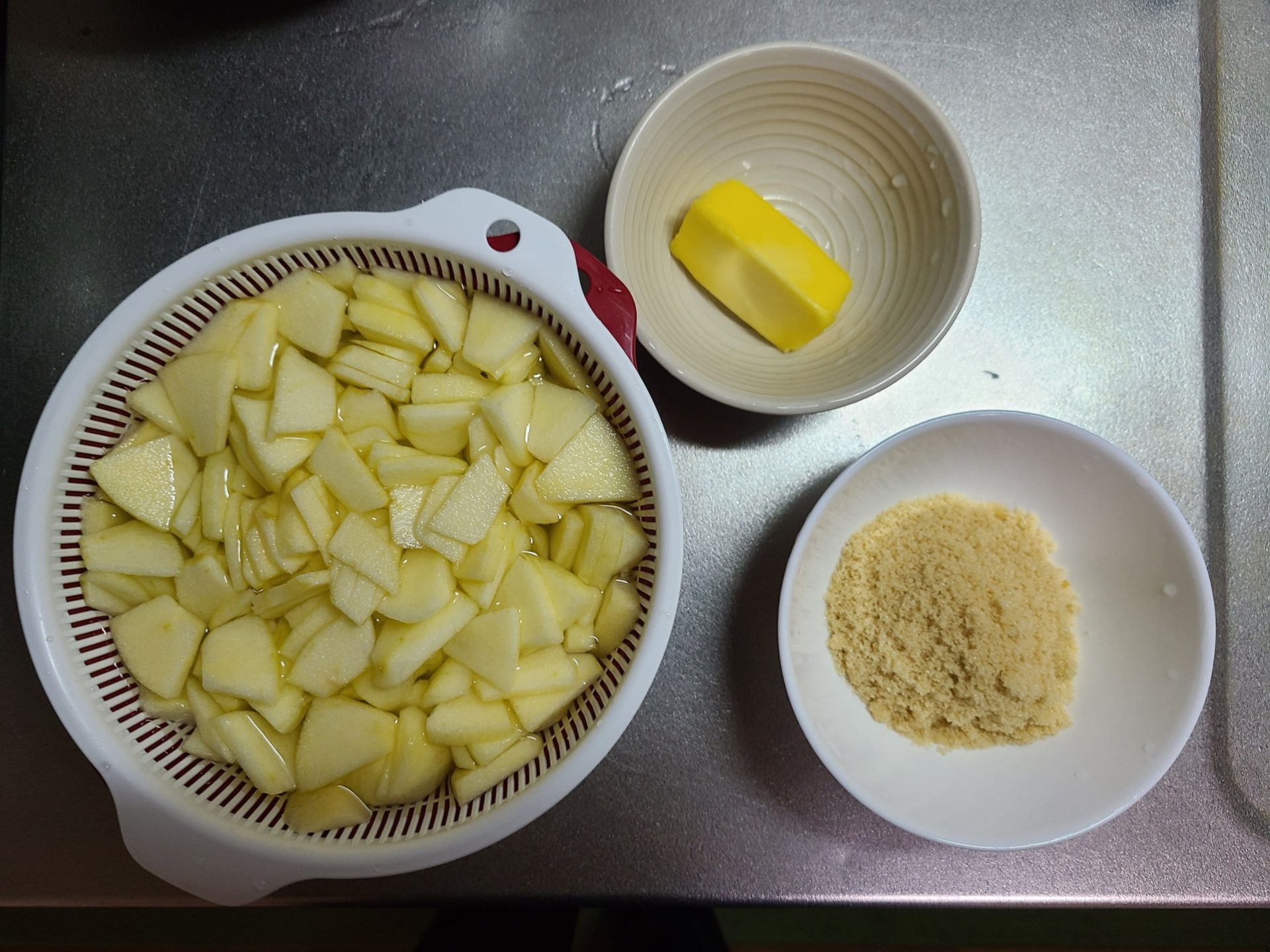 (今回は三温糖、バター、レモン汁を使用)