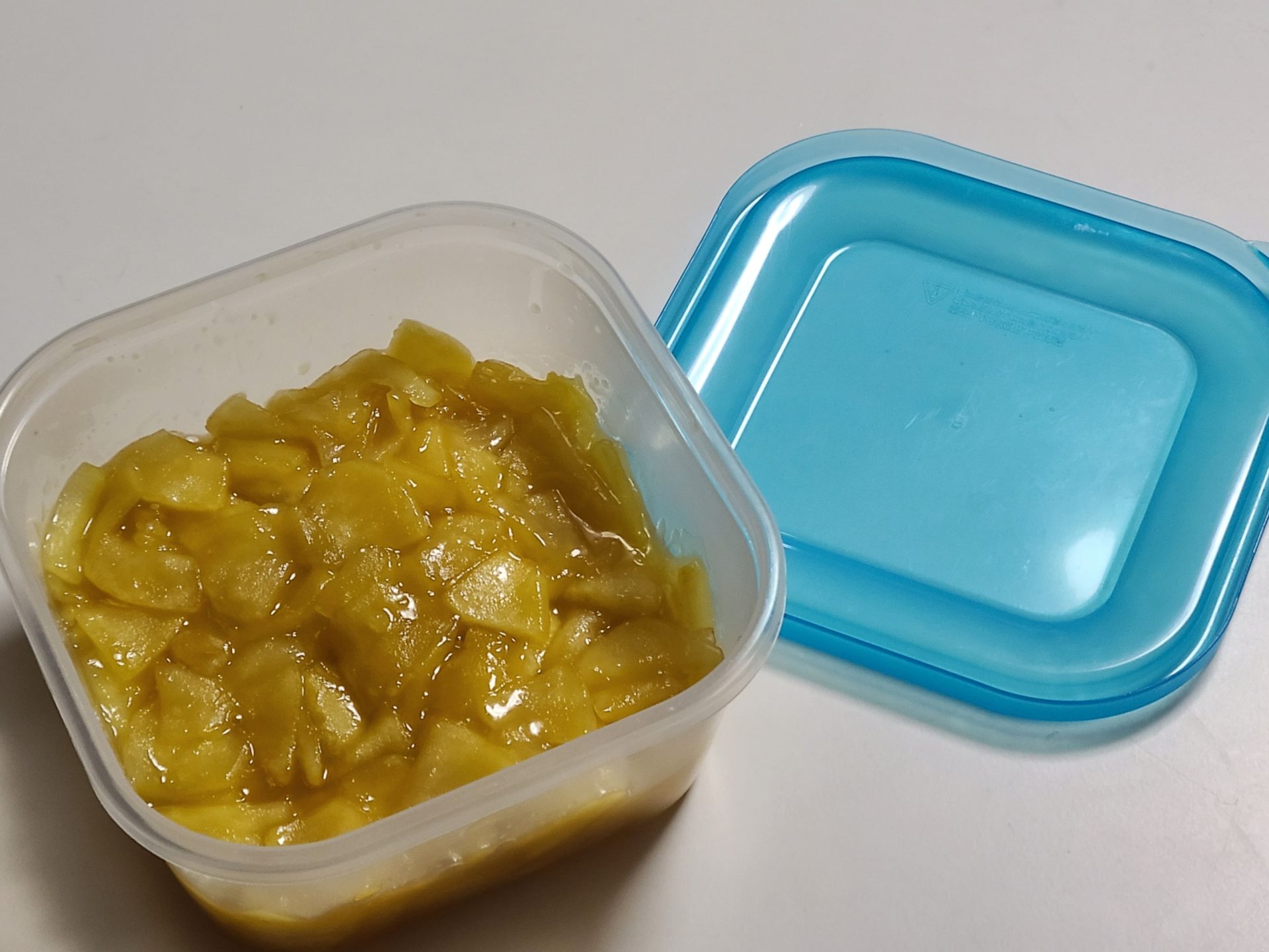 タッパーに入れて、半日ほど冷蔵庫で寝かしました。