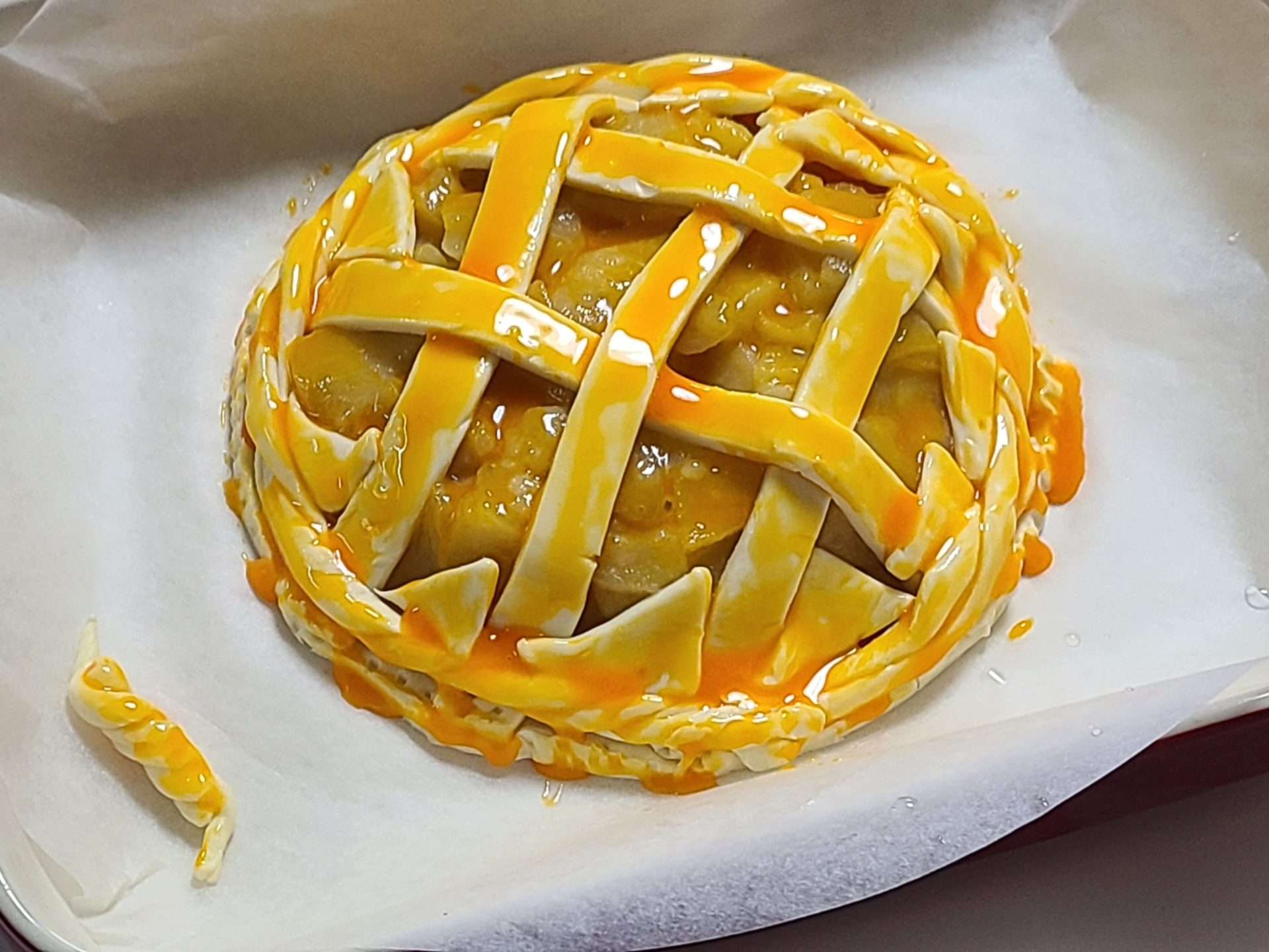 卵黄で表面を塗ったら、あとは焼くだけ!